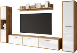 Meblościanka BOGOTA Zestaw mebli, salon Dąb Wotan / Biały Połysk