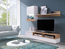 Meblościanka ROCO, Meblościanka do Salonu, Biały / Dąb Złoty