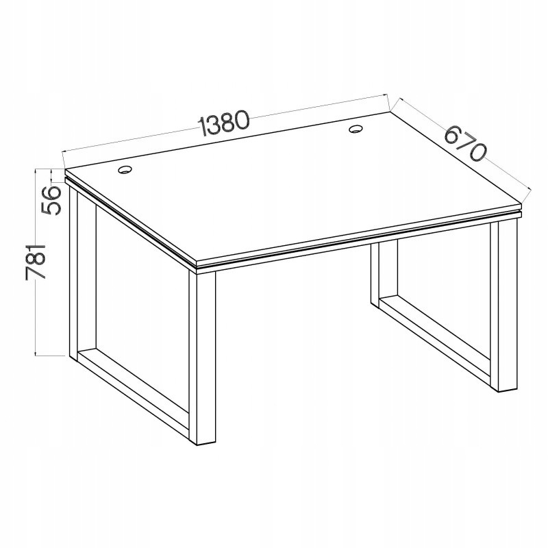 - wykonany z płyty laminowanej o grubości 56mm w kolorze dąb artisan (w środku blat w kolorze czarnym o grubości 12mm)