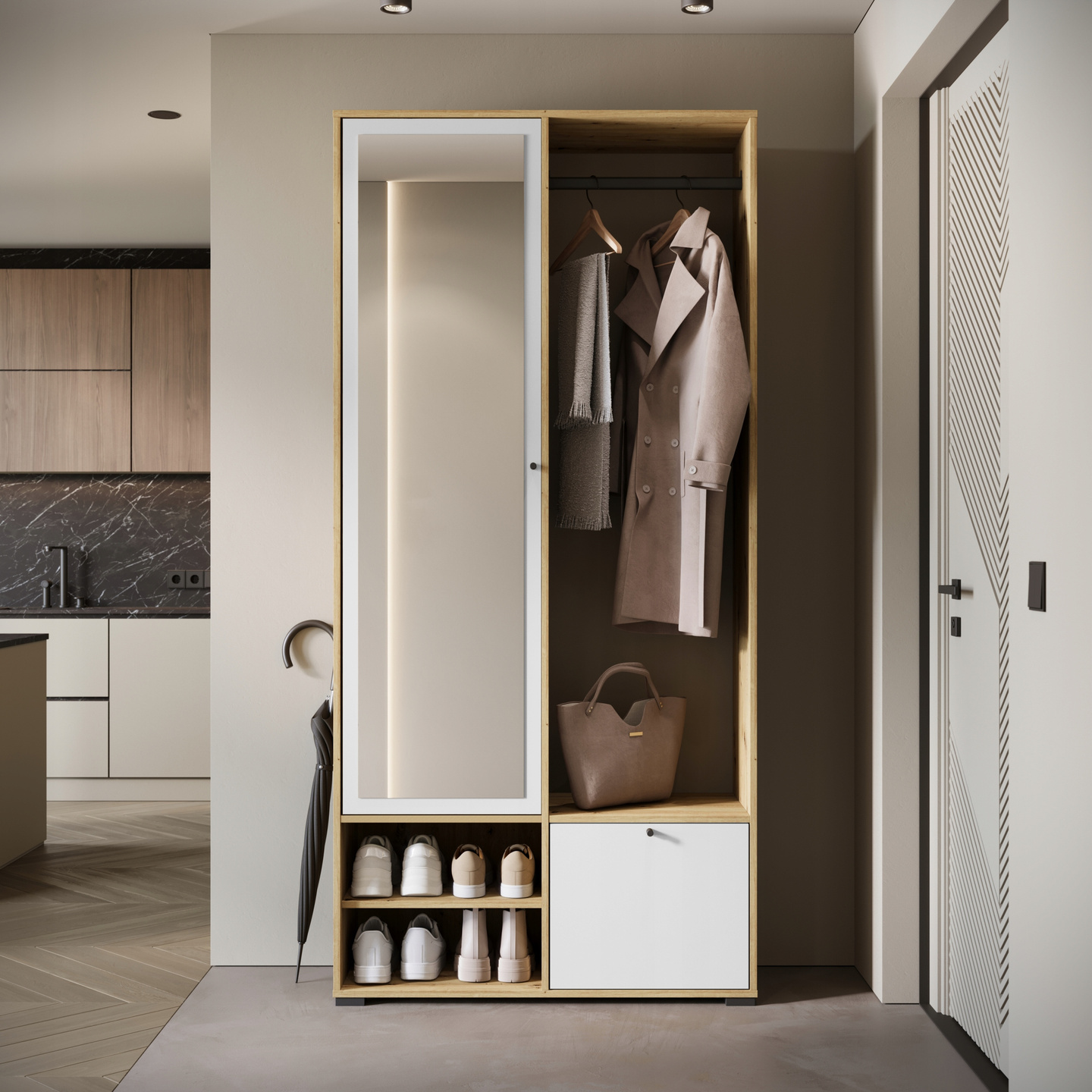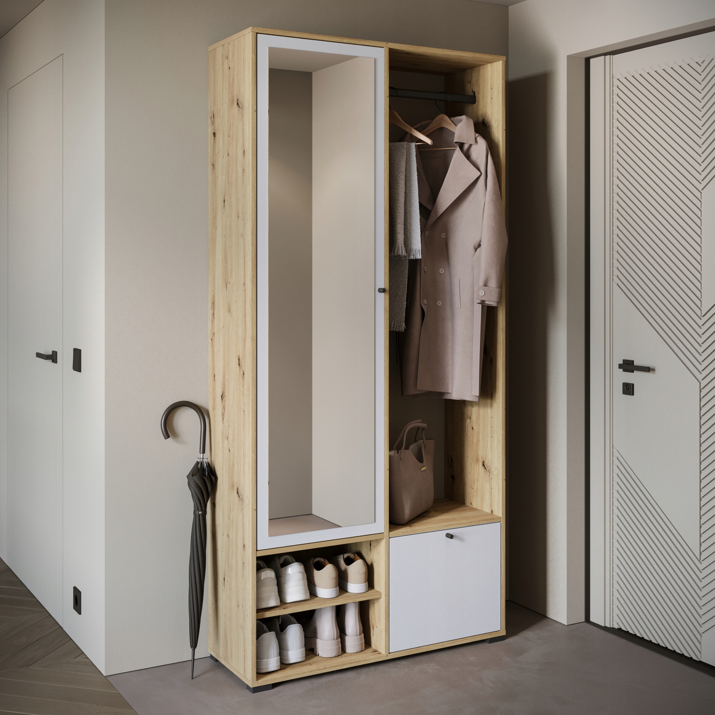 Garderoba DINO, lustro, wieszak DĄB ARTISAN / BIAŁY