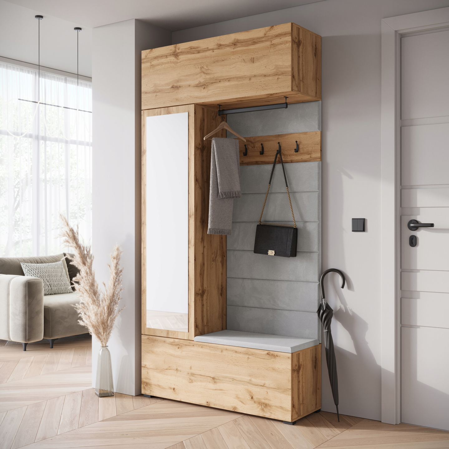 - dąb wotan + tapicerka szara mono 244