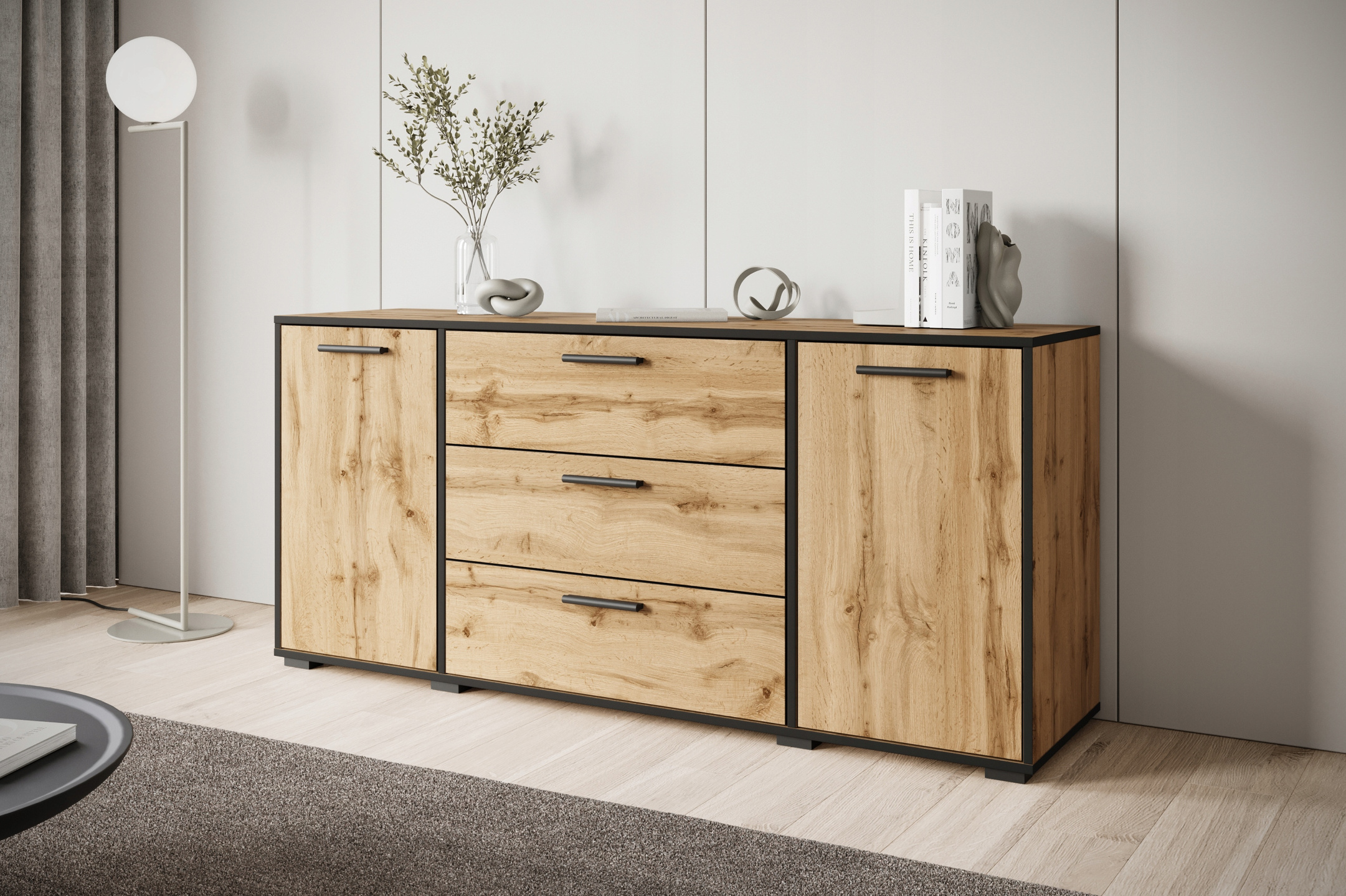 Dąb Wotan/Krawędź Czarny Grafit: