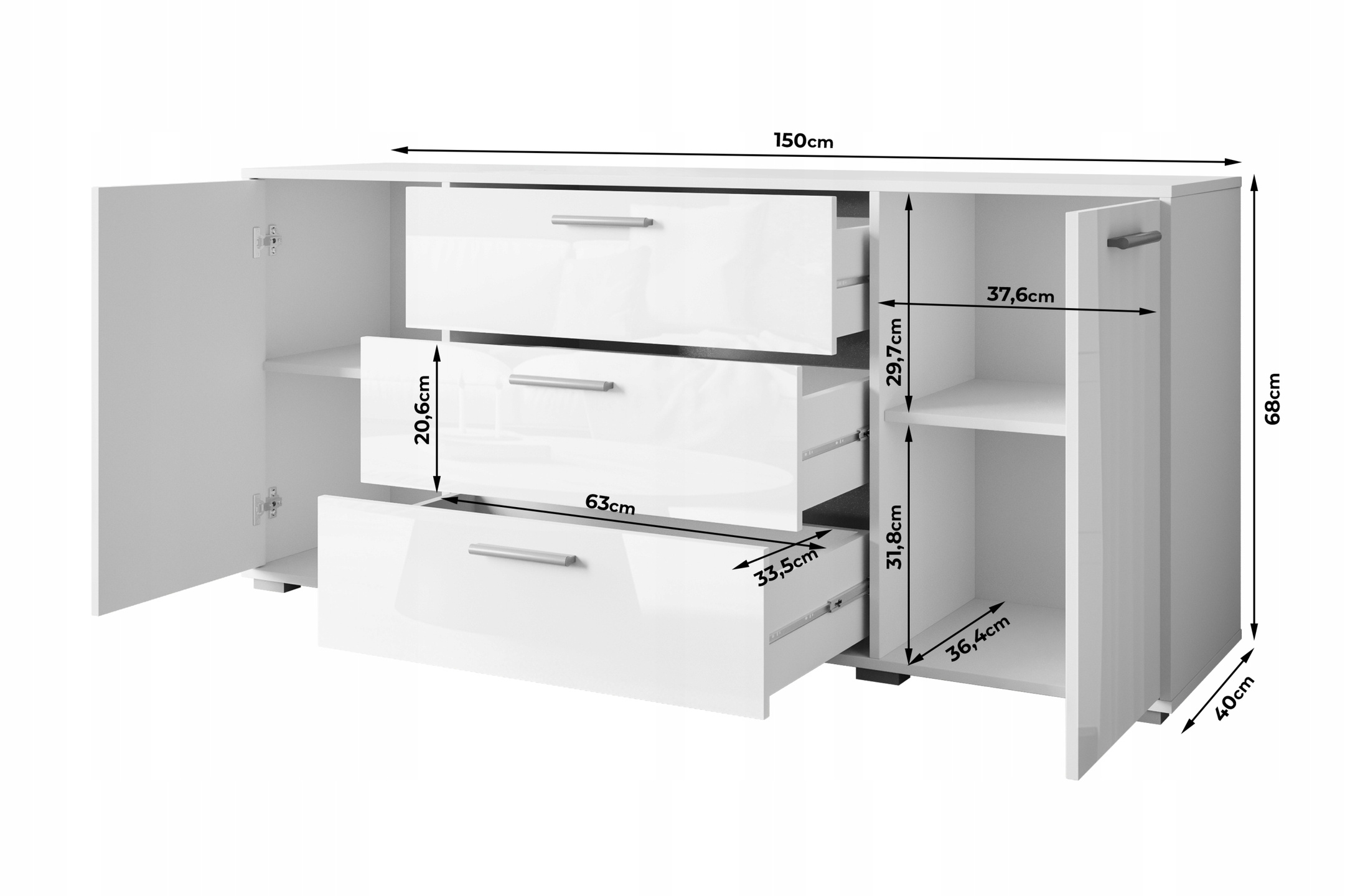 Komoda BOGOTA 150 Biały / Biały Połysk