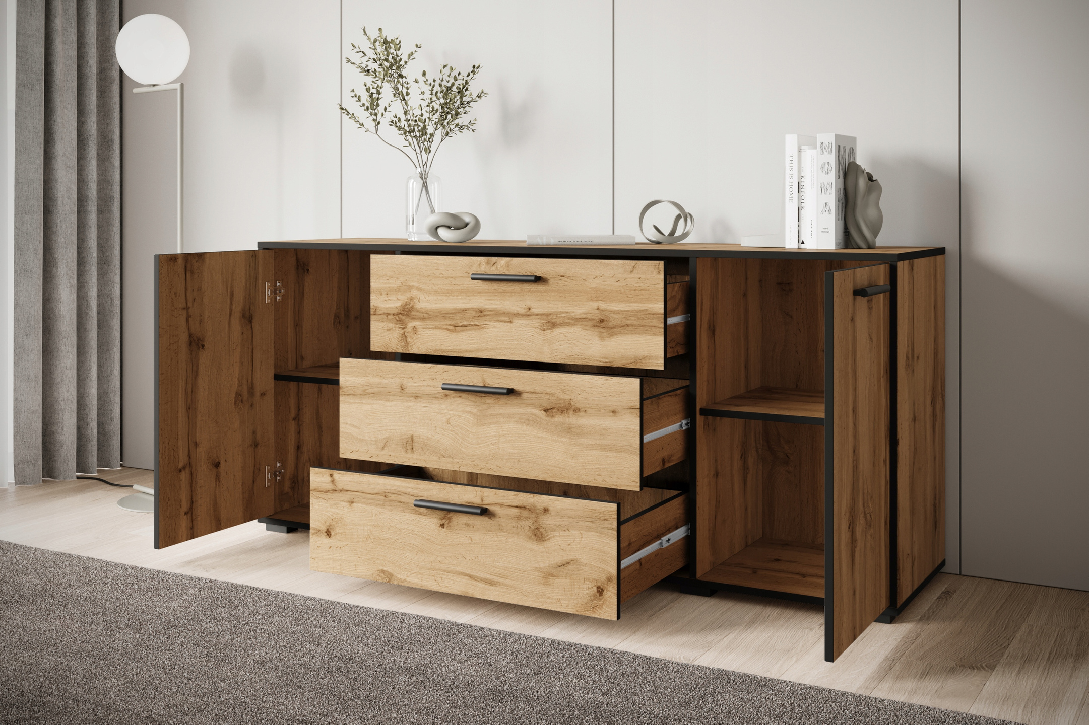 Komoda Bogota 150 Dąb Wotan/Krawędź Czarny Grafit: