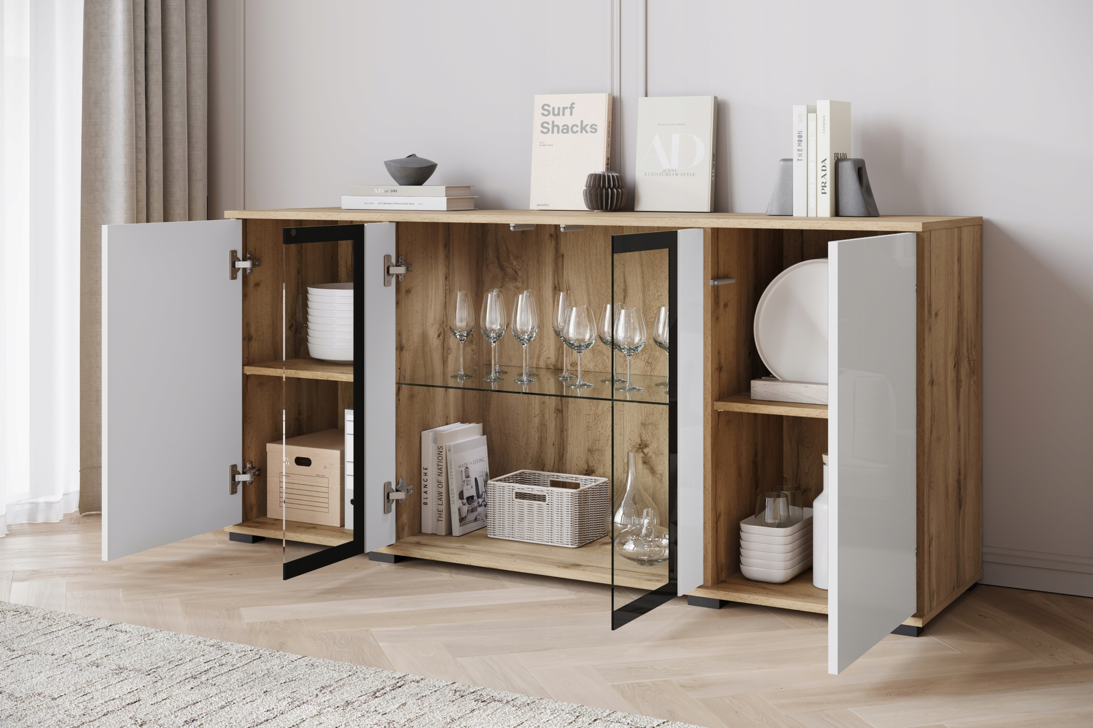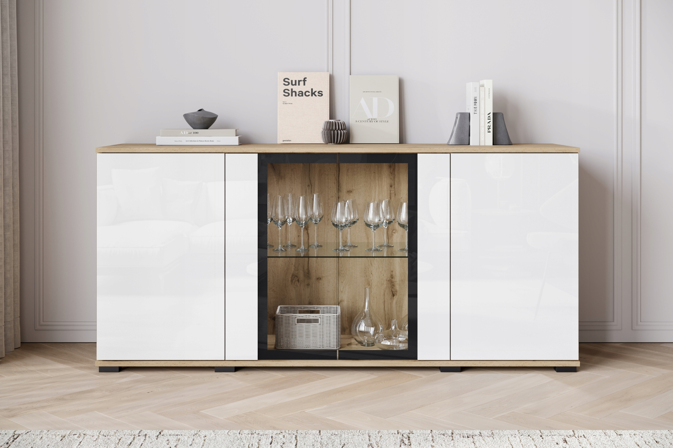 Komoda Caro 154 Dąb Wotan/Biały Połysk: