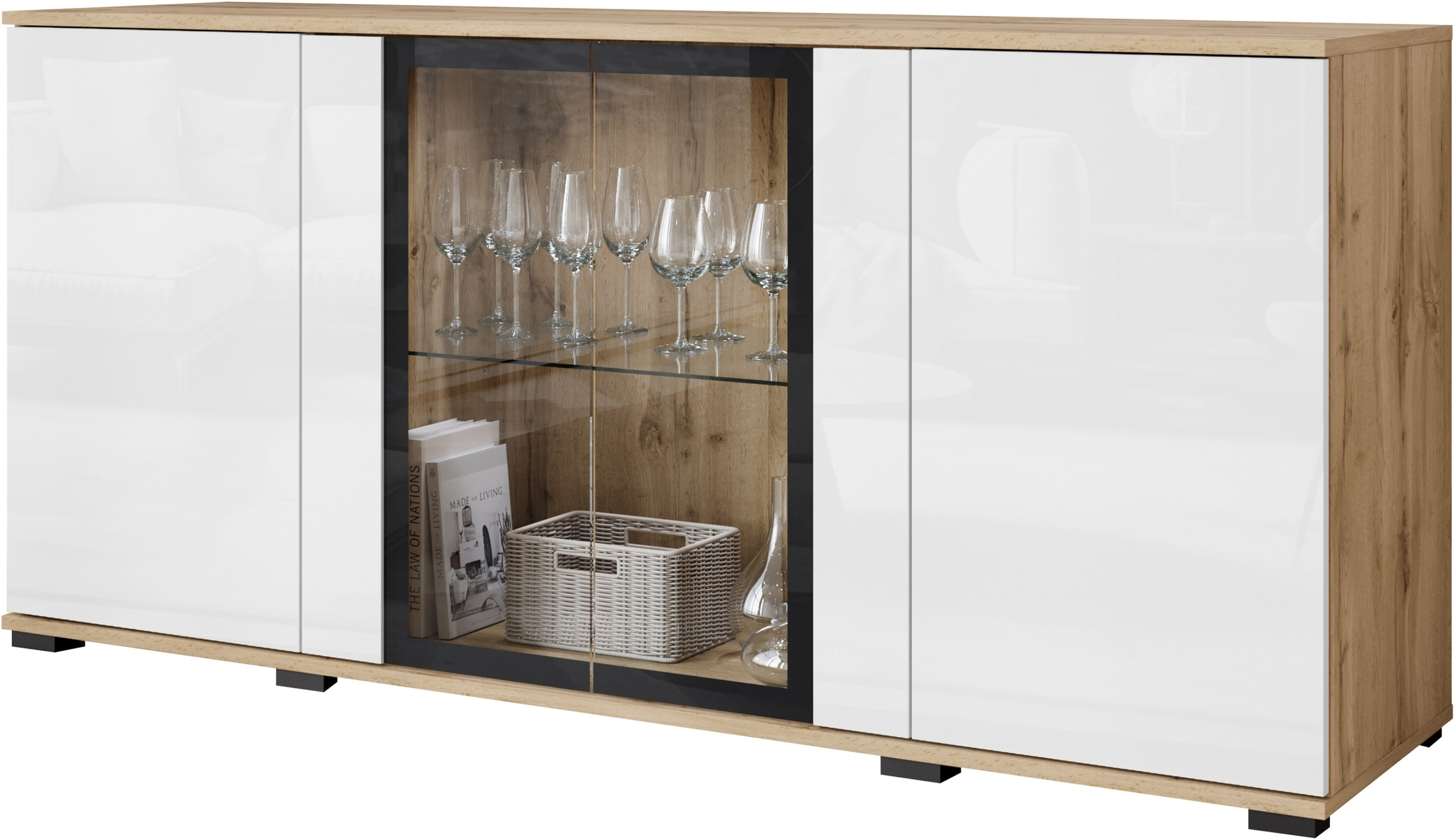 Komoda CARO 154 Dąb Wotan / Biały Połysk