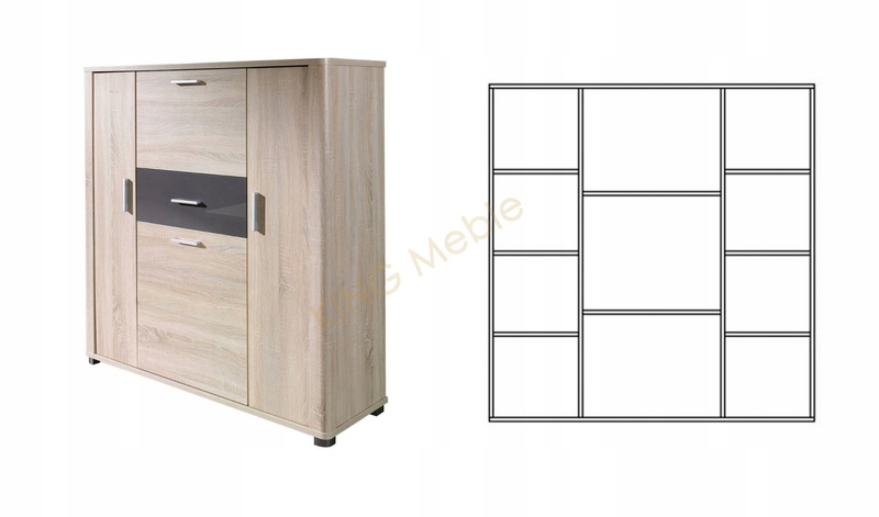 Komoda FILL 3 Dąb Sonoma/Grafit Połysk: