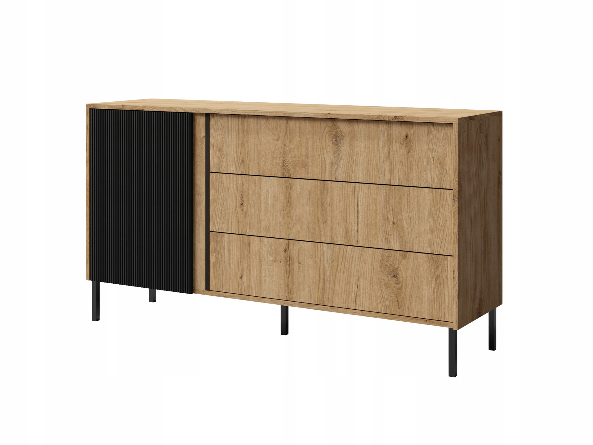 Komoda MIA 3, Komoda 145cm, Meble do Salonu MIA, MDF Dąb Odwieczny / Czarny