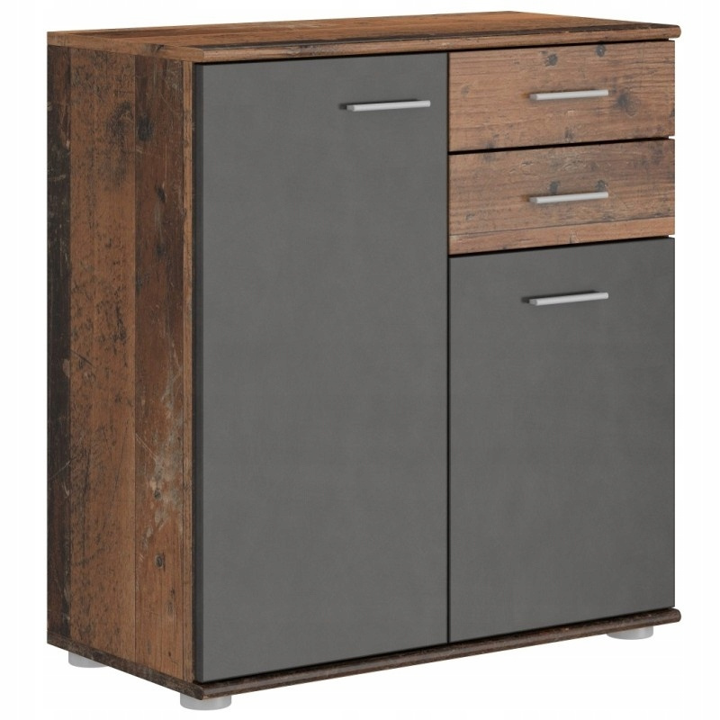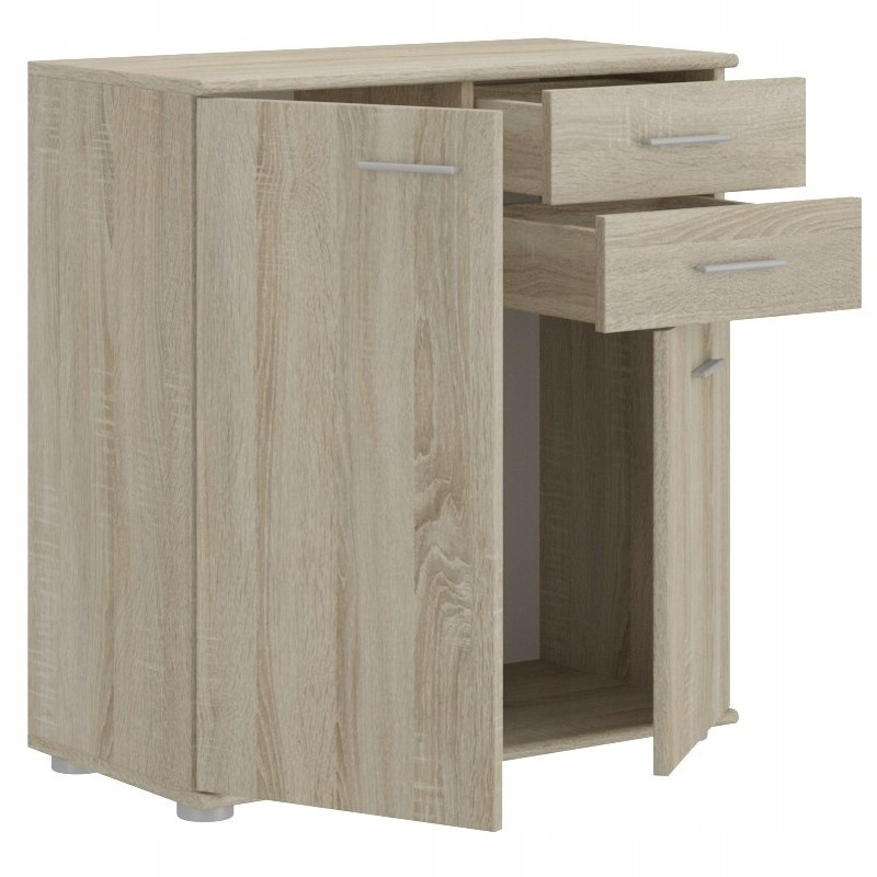 - komoda posiada dwoje drzwi i dwie szuflady