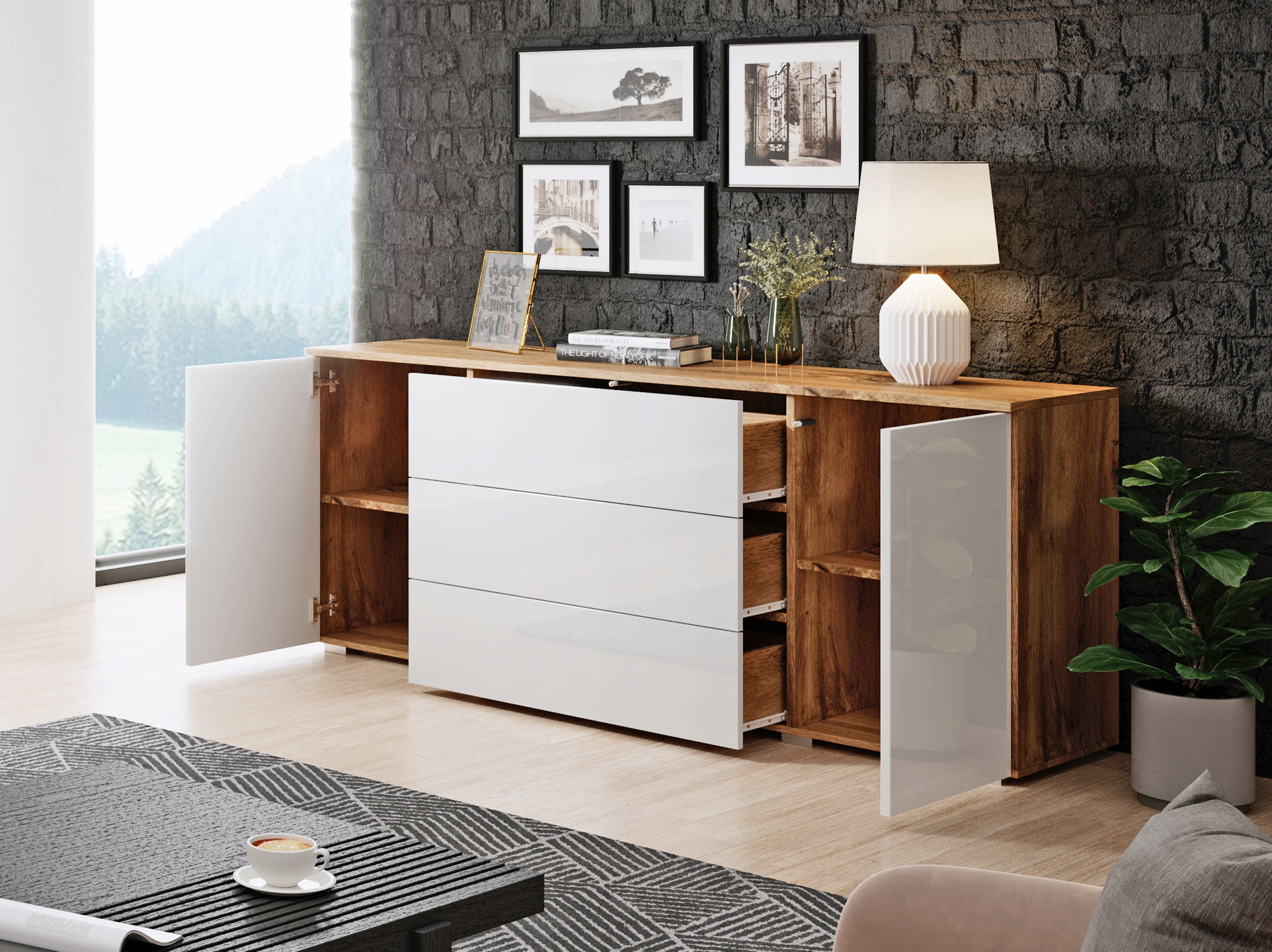 Komoda PARIS 150 Dąb Wotan / Biały Połysk