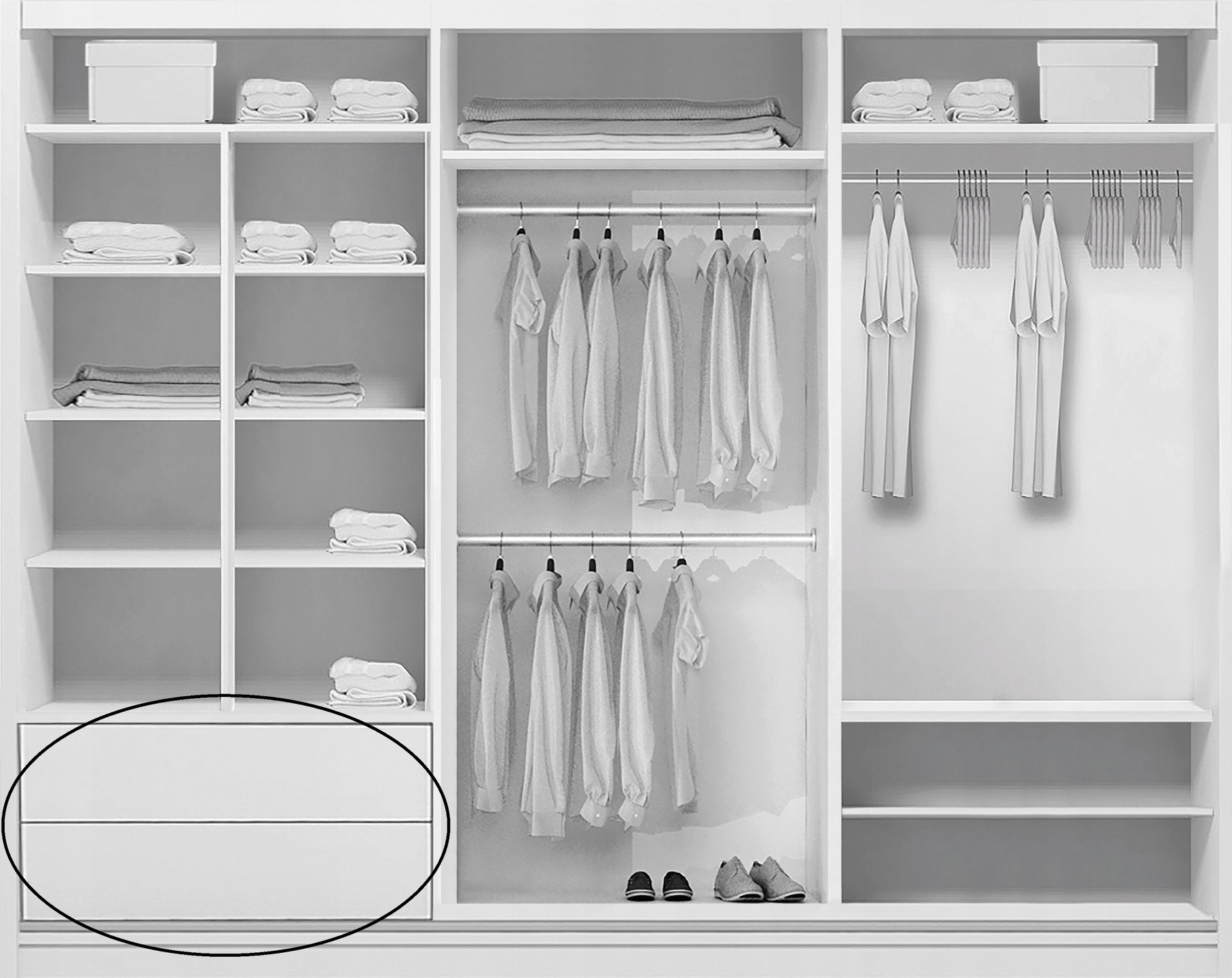 Posiada cztery szuflady. Wykonany z płyty laminowanej.