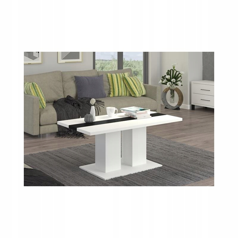 - blat stolika o grubości 28mm w kolorze białym, ze wstawką w kolorze czarnym