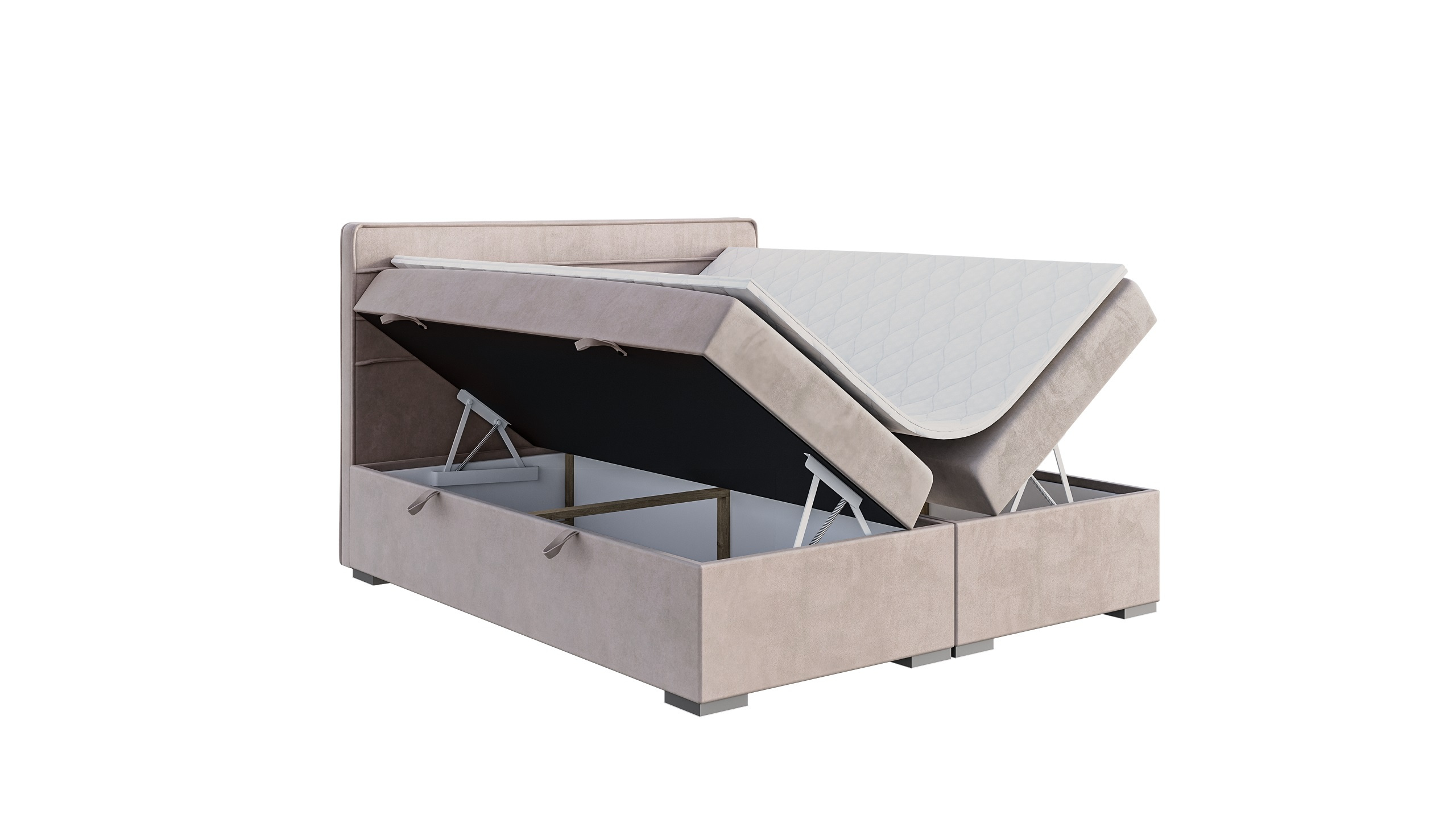 • podstawa łóżka to skrzynia z pojemnikami na pościel otwieranymi na boki wraz z automatami wspomagającymi otwieranie