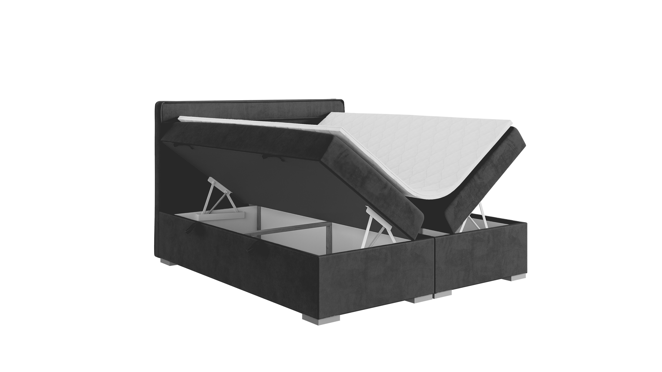 • podstawa łóżka to skrzynia z pojemnikami na pościel otwieranymi na boki wraz z automatami wspomagającymi otwieranie