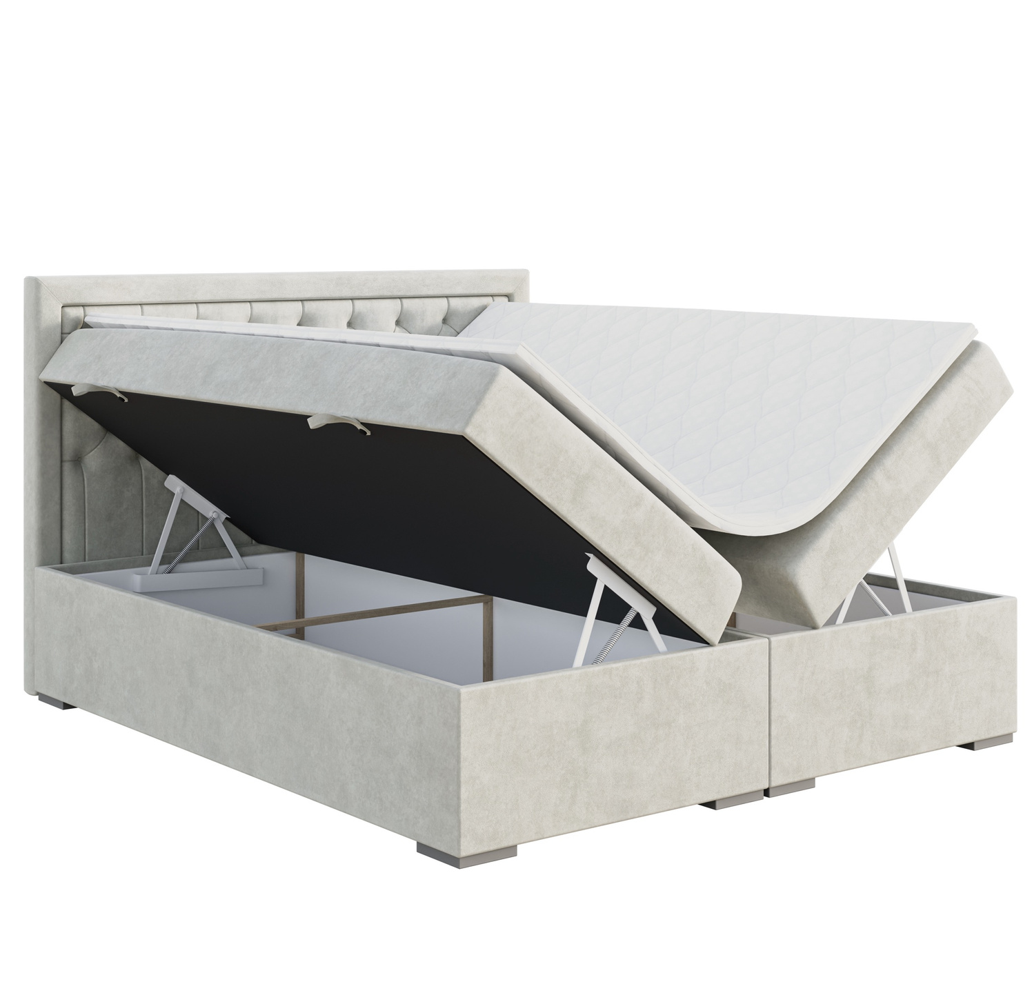 • podstawa łóżka to skrzynia z pojemnikami na pościel otwieranymi na boki wraz z automatami wspomagającymi otwieranie