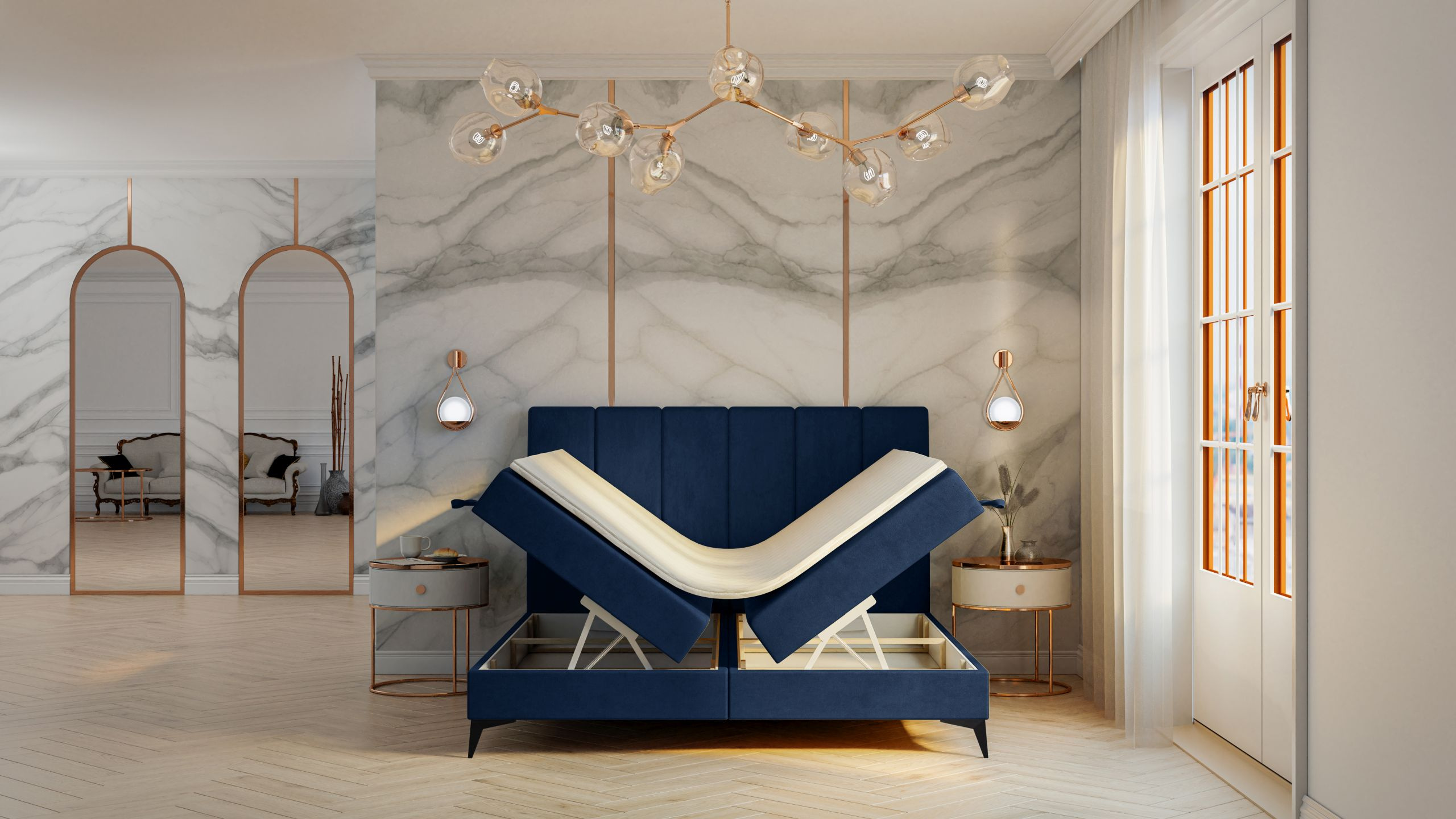 - podstawa łóżka to skrzynia z pojemnikami na pościel otwieranymi na boki wraz z automatami wspomagającymi otwieranie