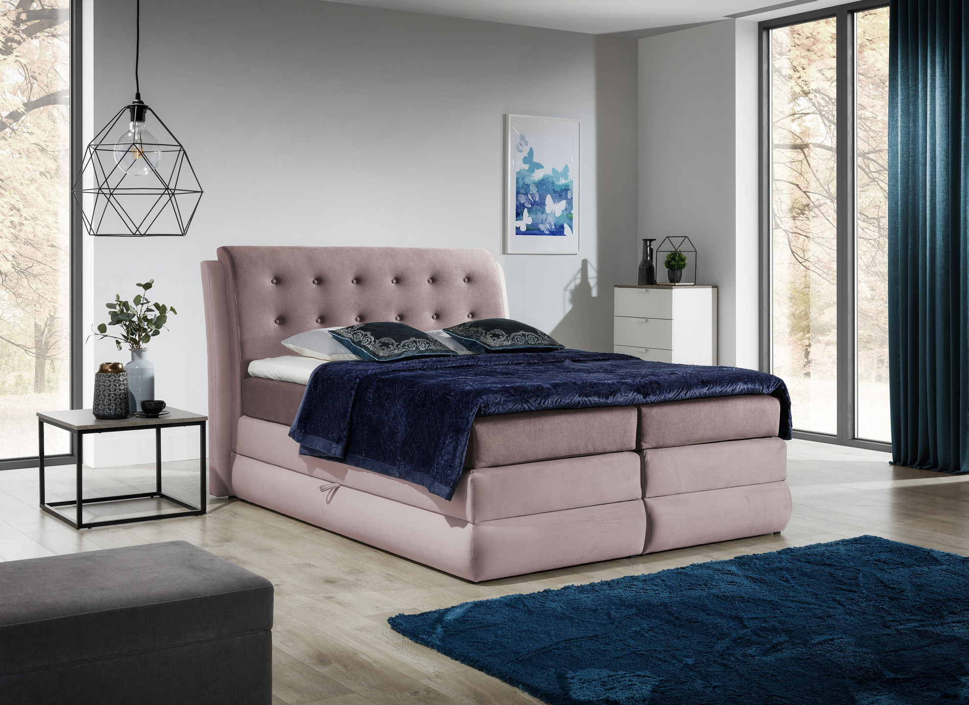 łóżko dostępne jest w bogatej gamie kolorystycznej, m.in. w tkaninach odpornych na ścieranie, utrudniających wchłanianie płynów, łatwych w czyszczeniu itd.