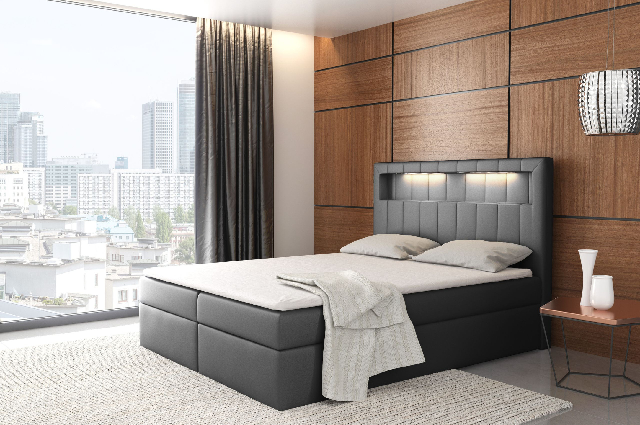 • wysokie wezgłowie z wnęką z oświetleniem LED (barwa ciepła lub zimna)