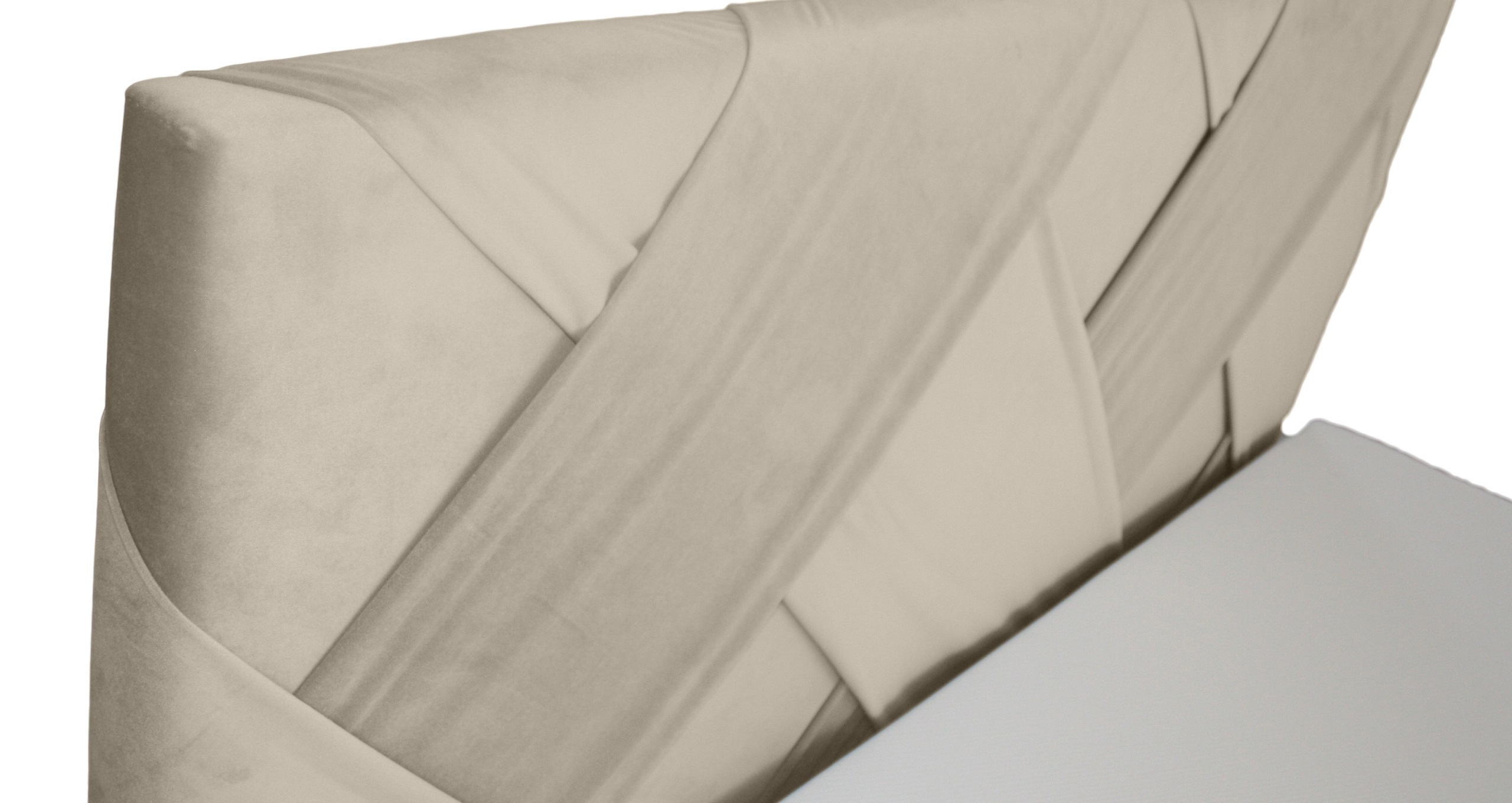 - łóżko wykonane jest z przekładanymi szalami z tkaniny na wezgłowiu o szerokości 25 cm