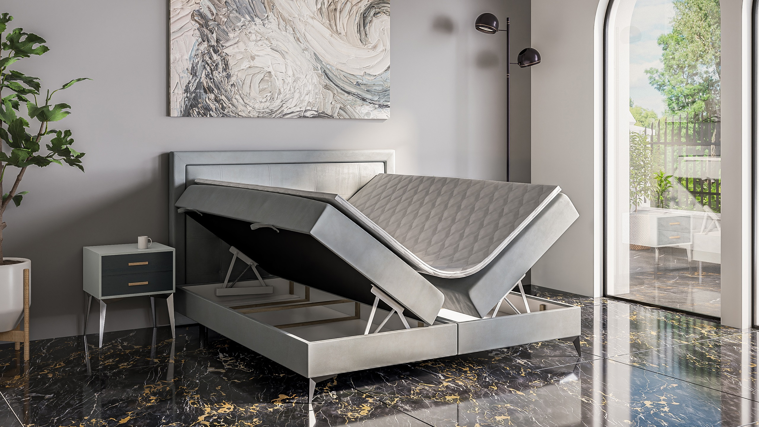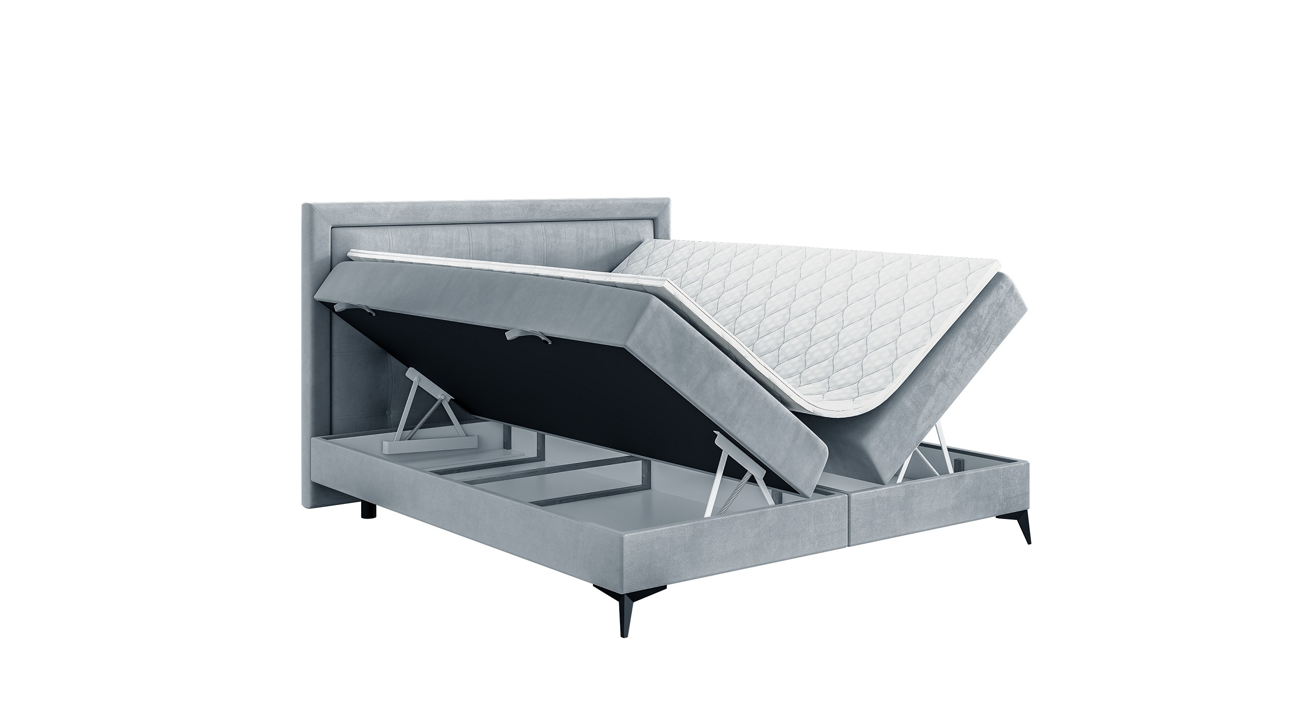 - podstawa łóżka to skrzynia z pojemnikami na pościel otwieranymi na boki wraz z automatami wspomagającymi otwieranie