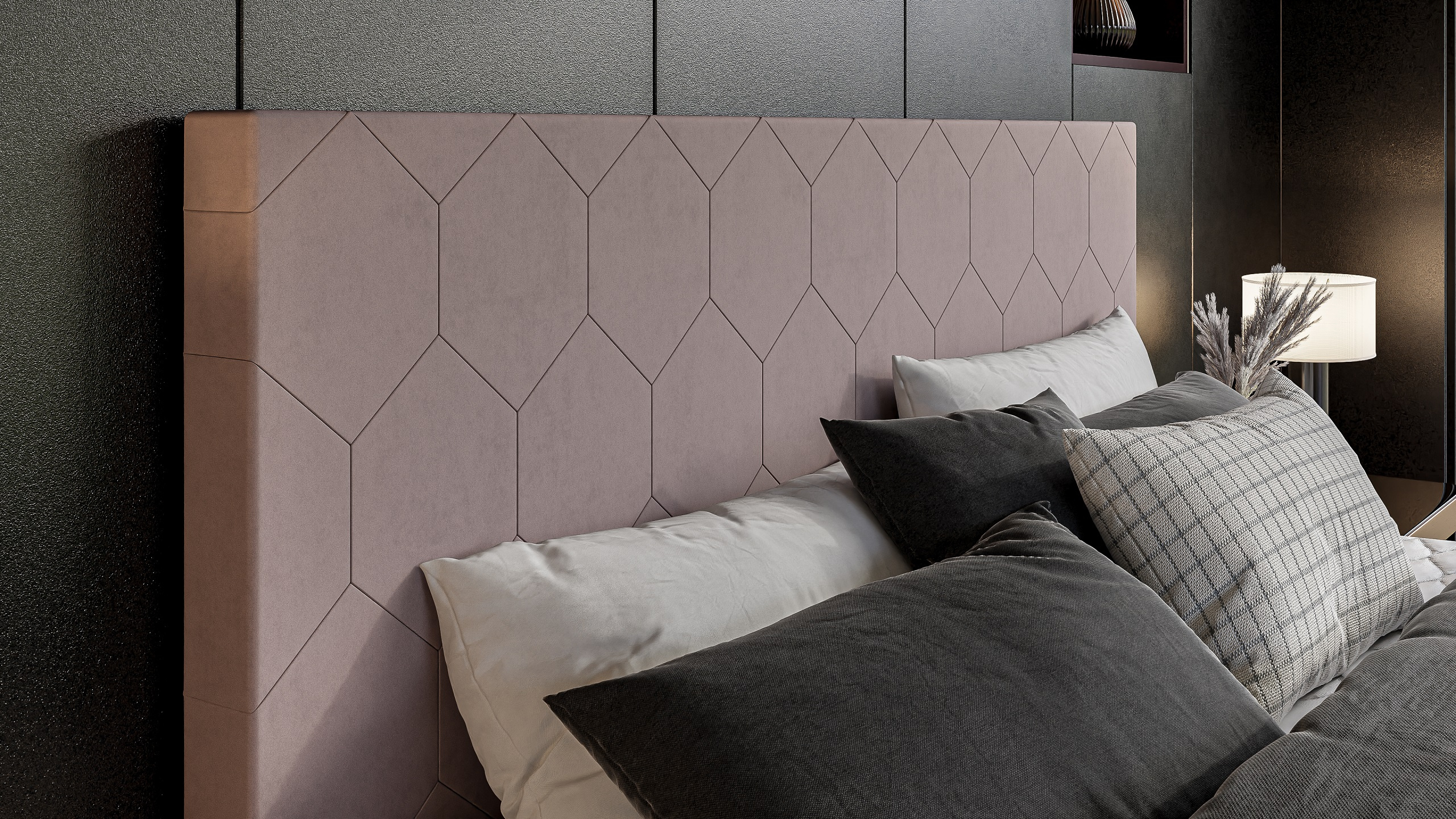 - wezgłowie w łóżku przeszywane jest na wzór plastrów miodu