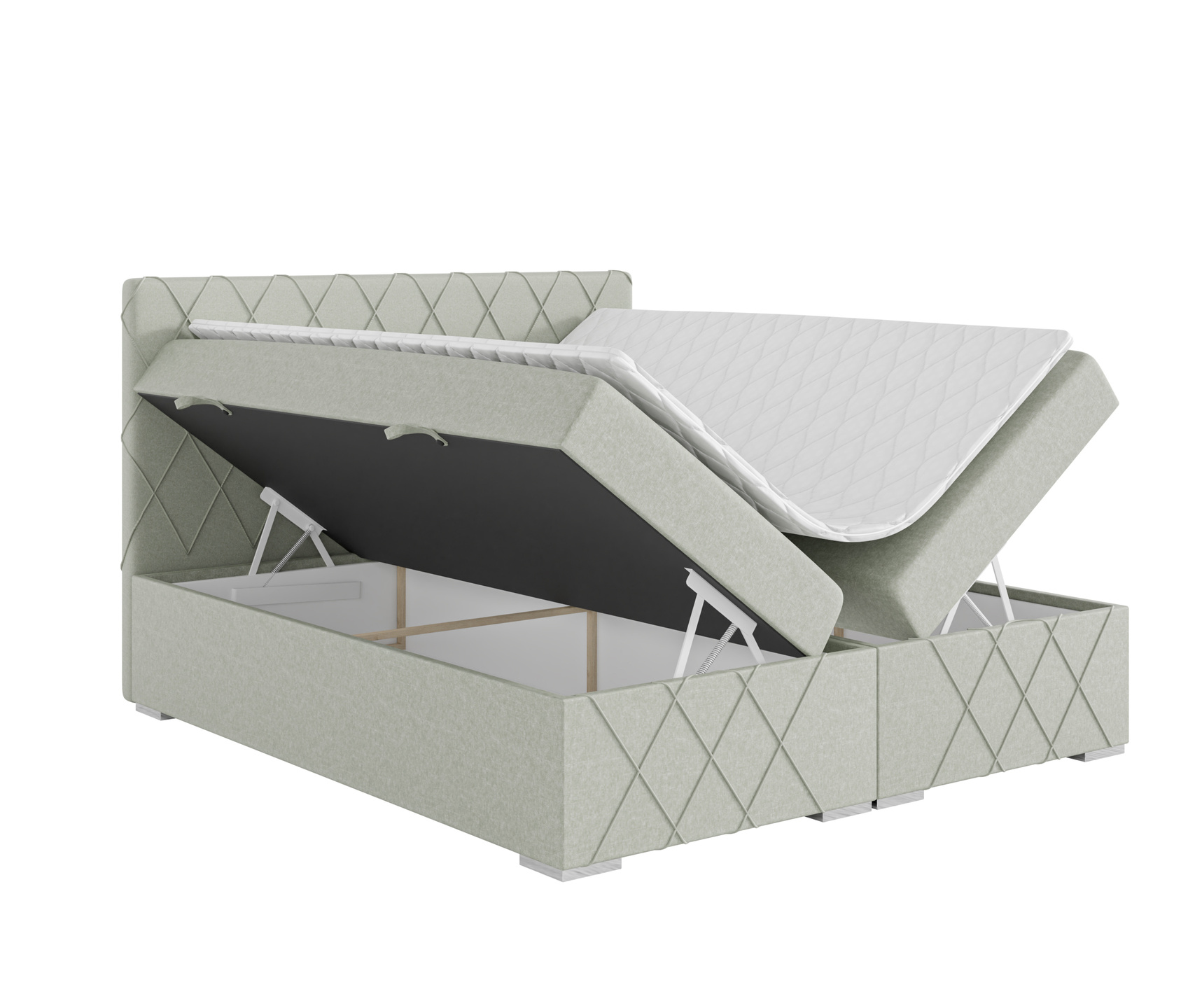 - podstawa łóżka to skrzynia z pojemnikami na pościel otwieranymi na boki wraz z automatami wspomagającymi otwieranie