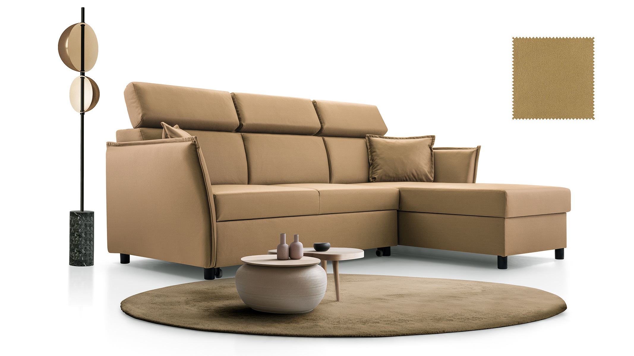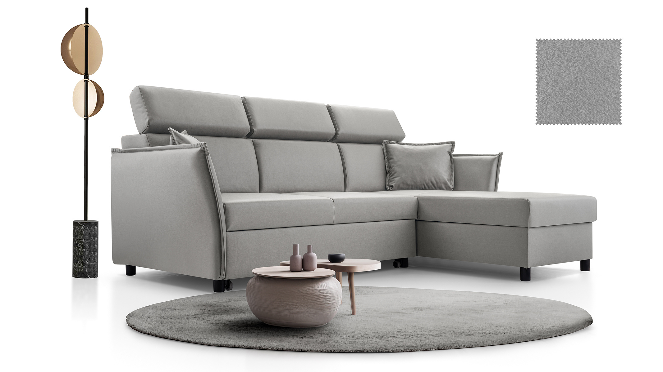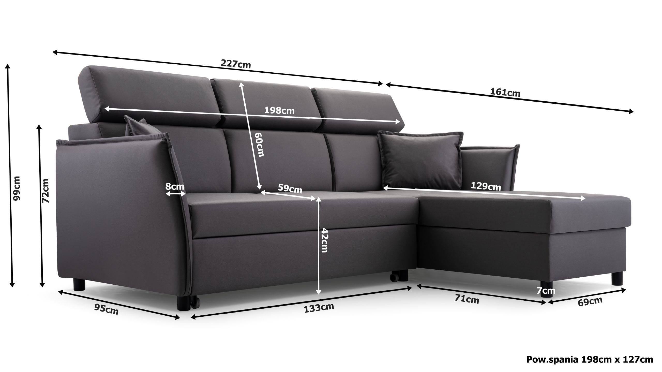 Mały Narożnik z Funkcją Spania MORIS 227 cm, Rozkładany, Zagłówki, Rogówka
