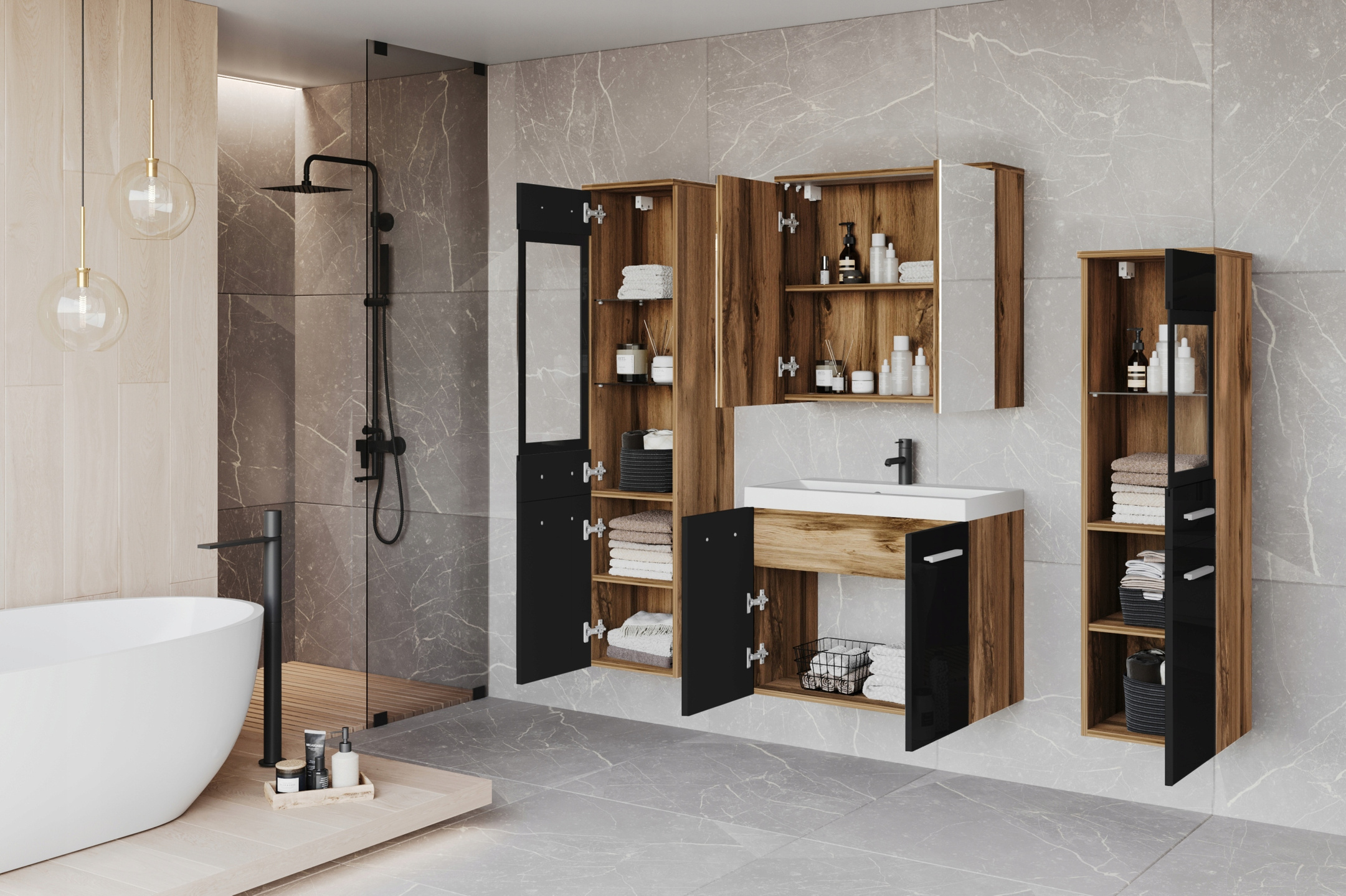 Meble łazienkowe Madrit II Dąb Wotan/Czarny Połysk: