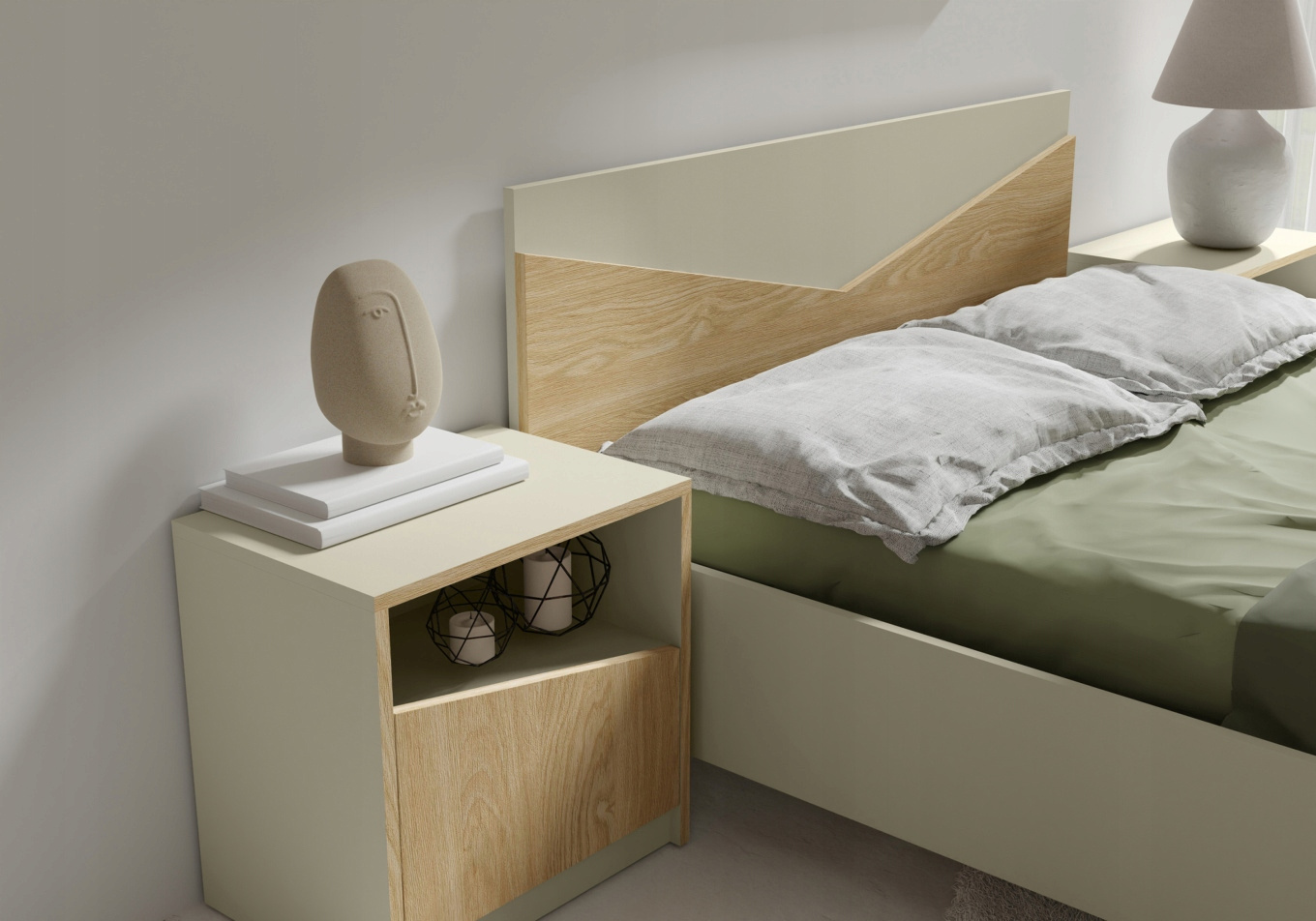 Meble do sypialni, Zestaw mebli ASTON, Szarobeżowy / Dąb Olejowany
