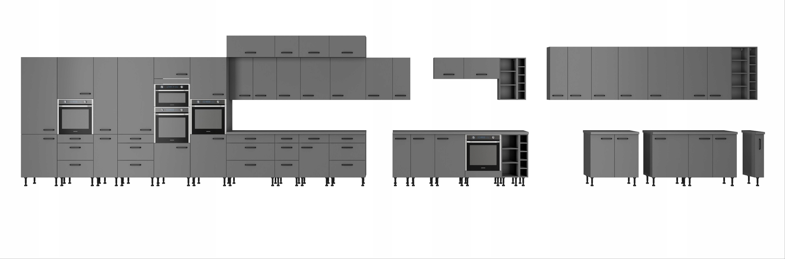 - Szafki dolne posiadają regulowane nóżki w zakresie 135mm - 160mm