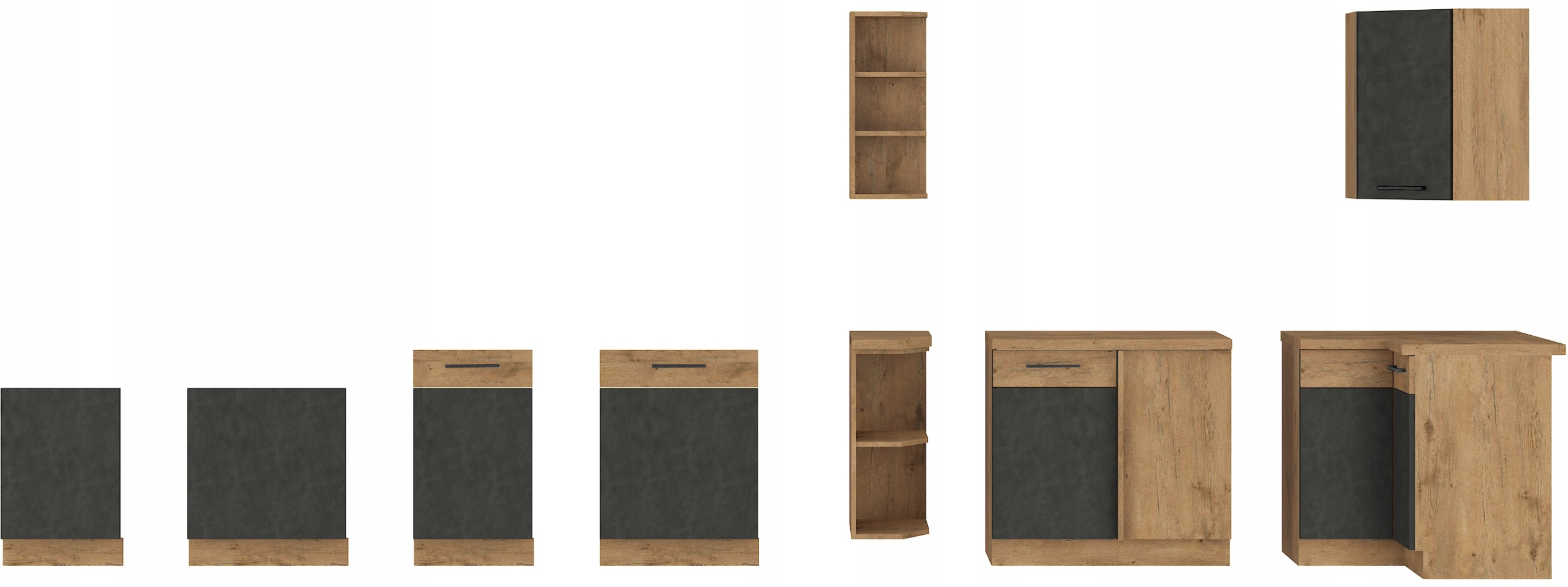 Aukcja dotyczy zestawu dziewięciu szafek VIGO w kolorze Dąb Lancelot + Matera (270cm)