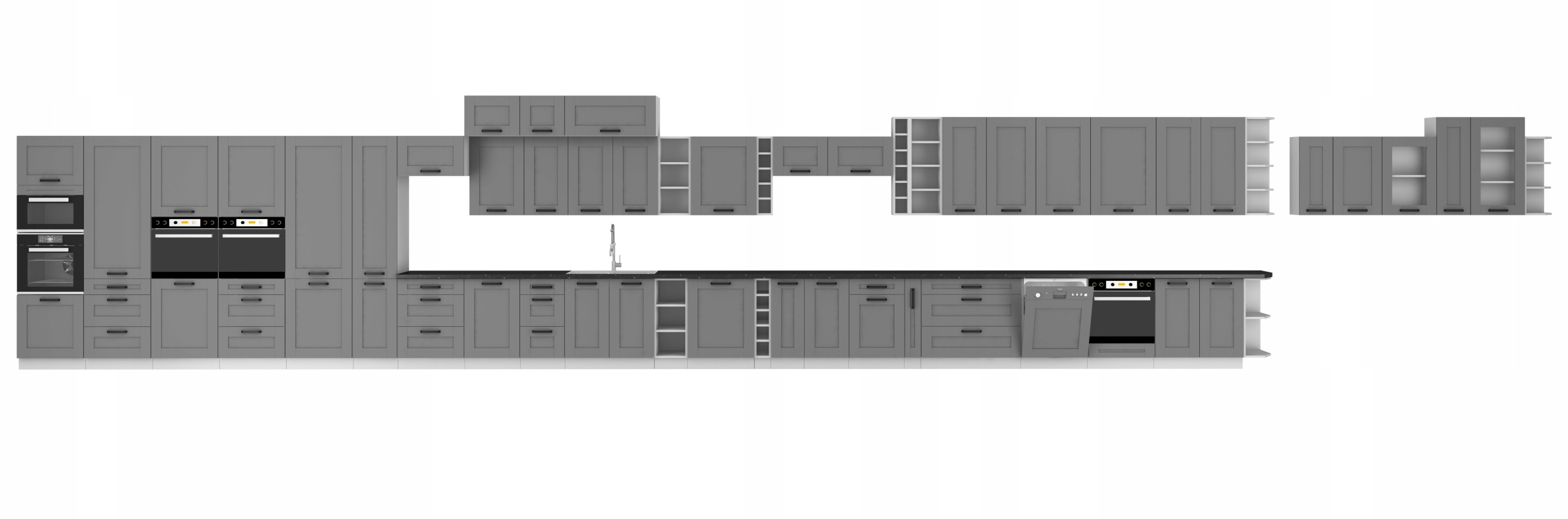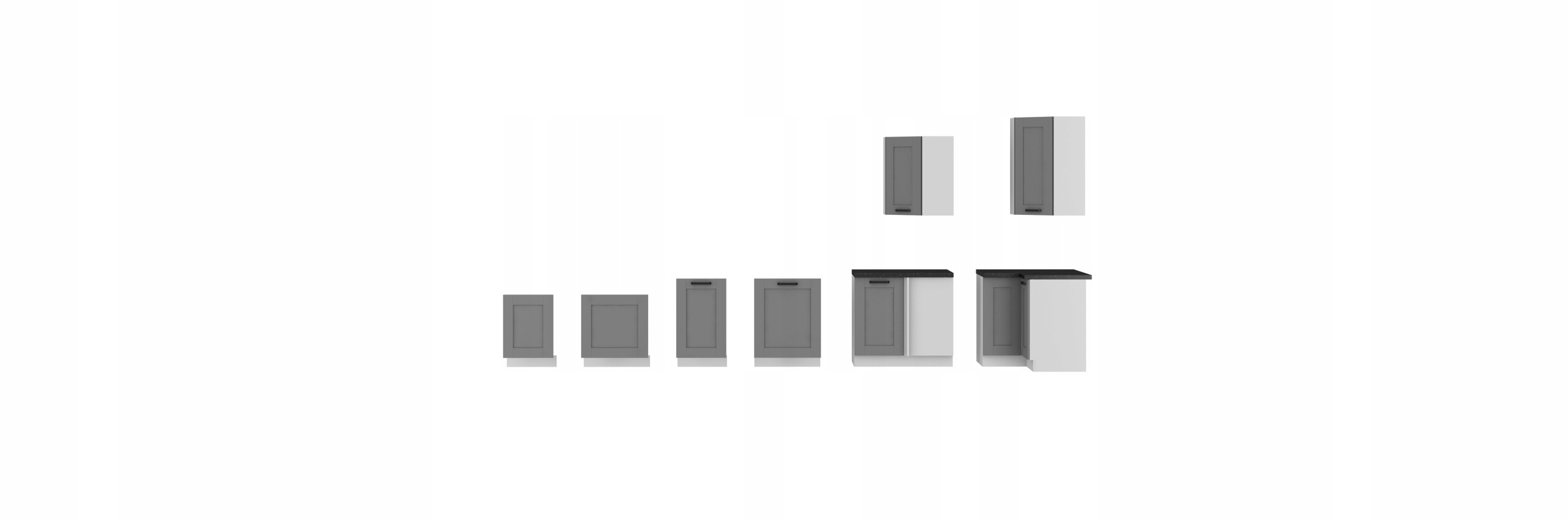 Aukcja dotyczy zestawu dziewięciu szafek LUNA w kolorze Dust Grey/Biały Mat