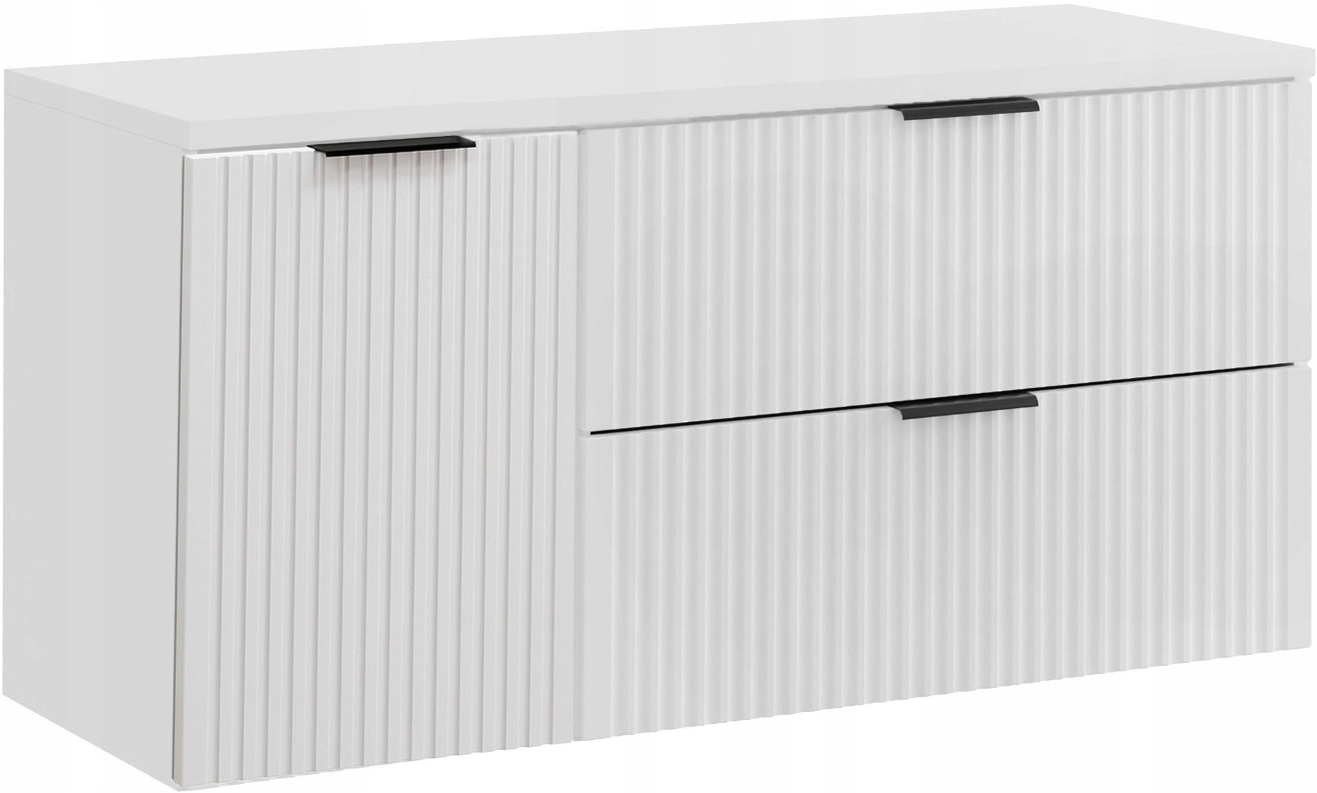 Meble łazienkowe Adel łączą elegancję i funkcjonalność. Pionowe, ryflowane fronty nadają meblom unikalny charakter i optycznie powiększają przestrzeń łazienki.