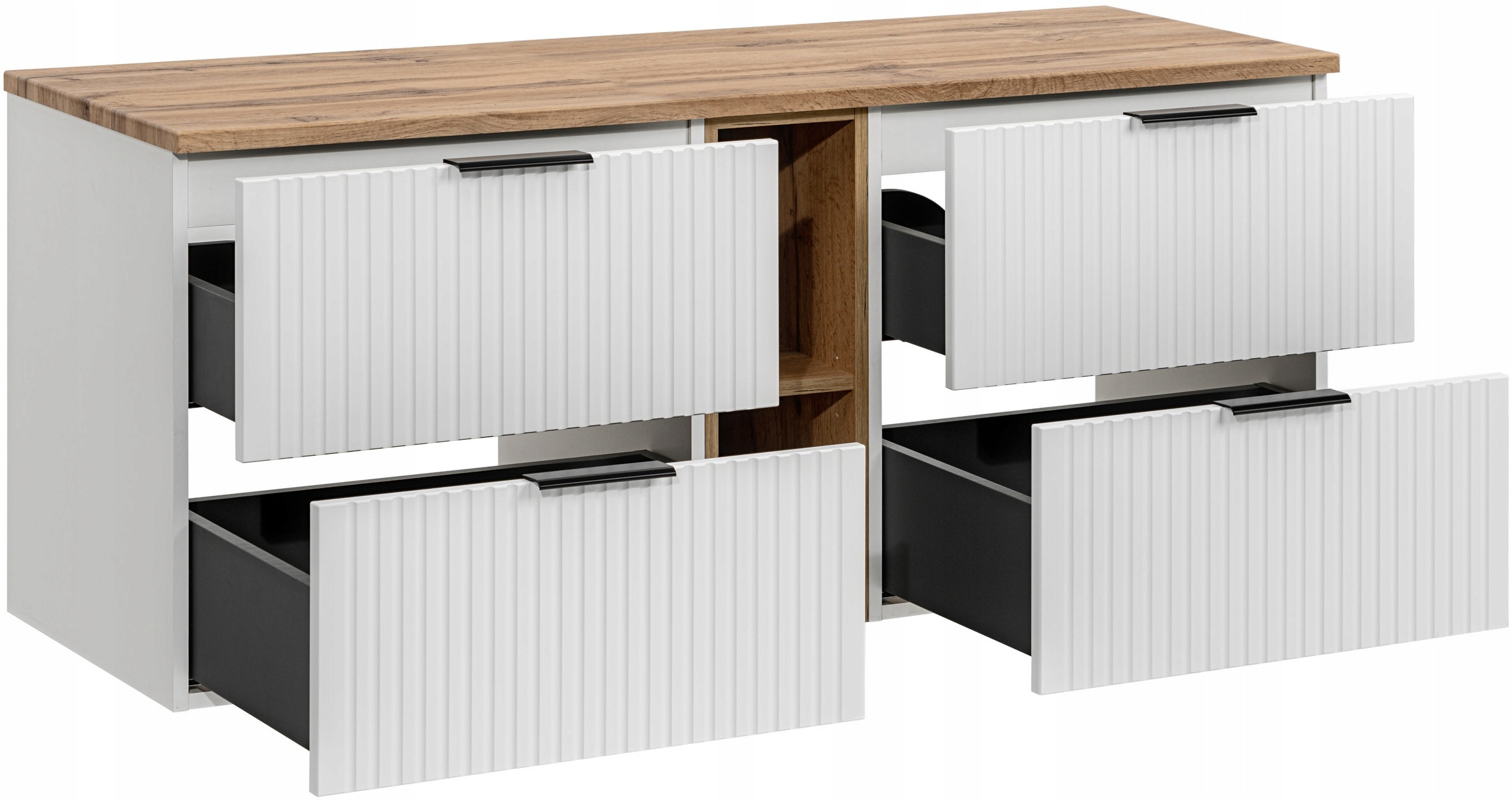 Meble łazienkowe Adel łączą elegancję i funkcjonalność. Pionowe, ryflowane fronty nadają meblom unikalny charakter i optycznie powiększają przestrzeń łazienki.