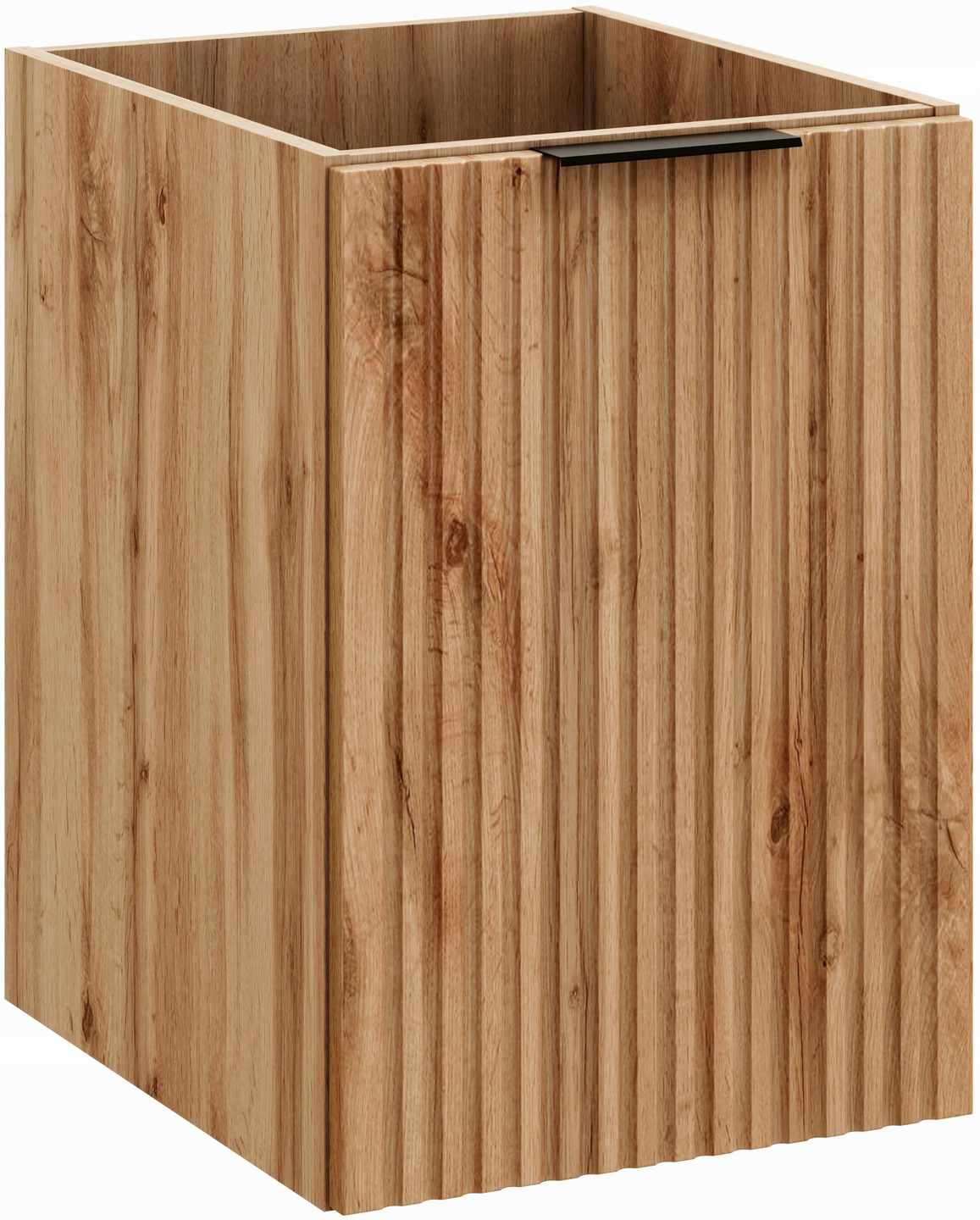 Meble łazienkowe Adel łączą elegancję i funkcjonalność. Pionowe, ryflowane fronty nadają meblom unikalny charakter i optycznie powiększają przestrzeń łazienki.