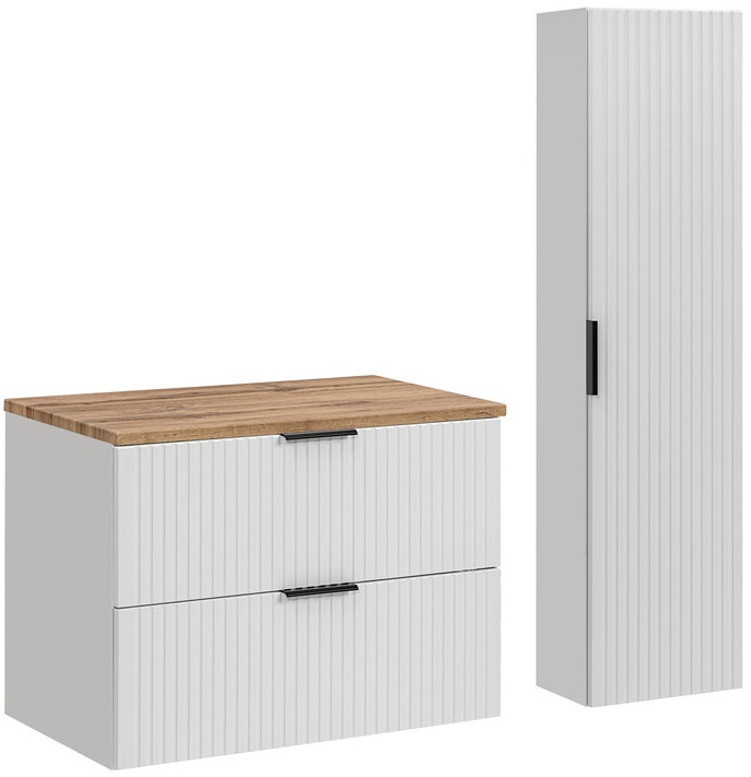 Meble łazienkowe Adel łączą elegancję i funkcjonalność. Pionowe, ryflowane fronty nadają meblom unikalny charakter i optycznie powiększają przestrzeń łazienki.