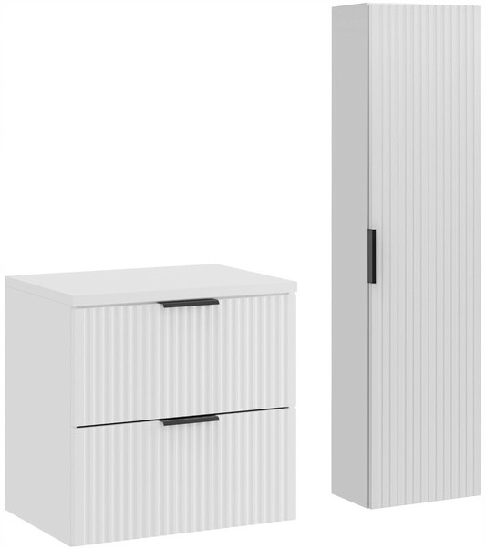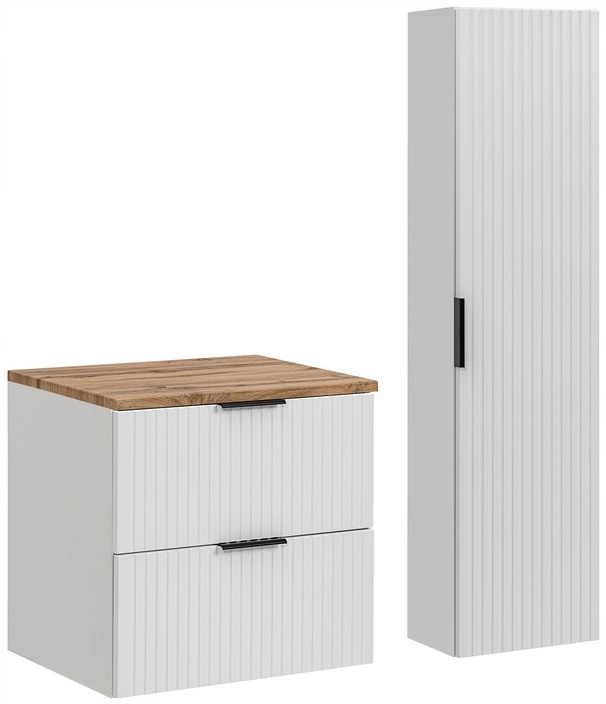 Meble łazienkowe Adel łączą elegancję i funkcjonalność. Pionowe, ryflowane fronty nadają meblom unikalny charakter i optycznie powiększają przestrzeń łazienki.