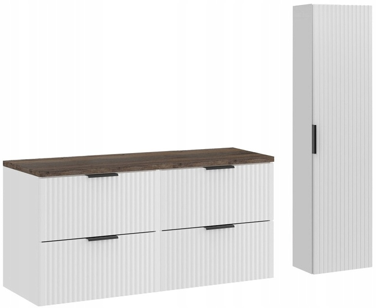 Meble łazienkowe Adel łączą elegancję i funkcjonalność. Pionowe, ryflowane fronty nadają meblom unikalny charakter i optycznie powiększają przestrzeń łazienki.