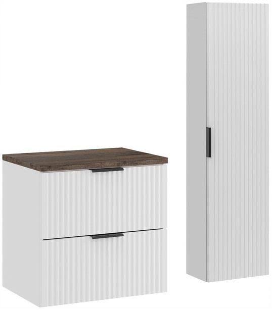 Meble łazienkowe Adel łączą elegancję i funkcjonalność. Pionowe, ryflowane fronty nadają meblom unikalny charakter i optycznie powiększają przestrzeń łazienki.