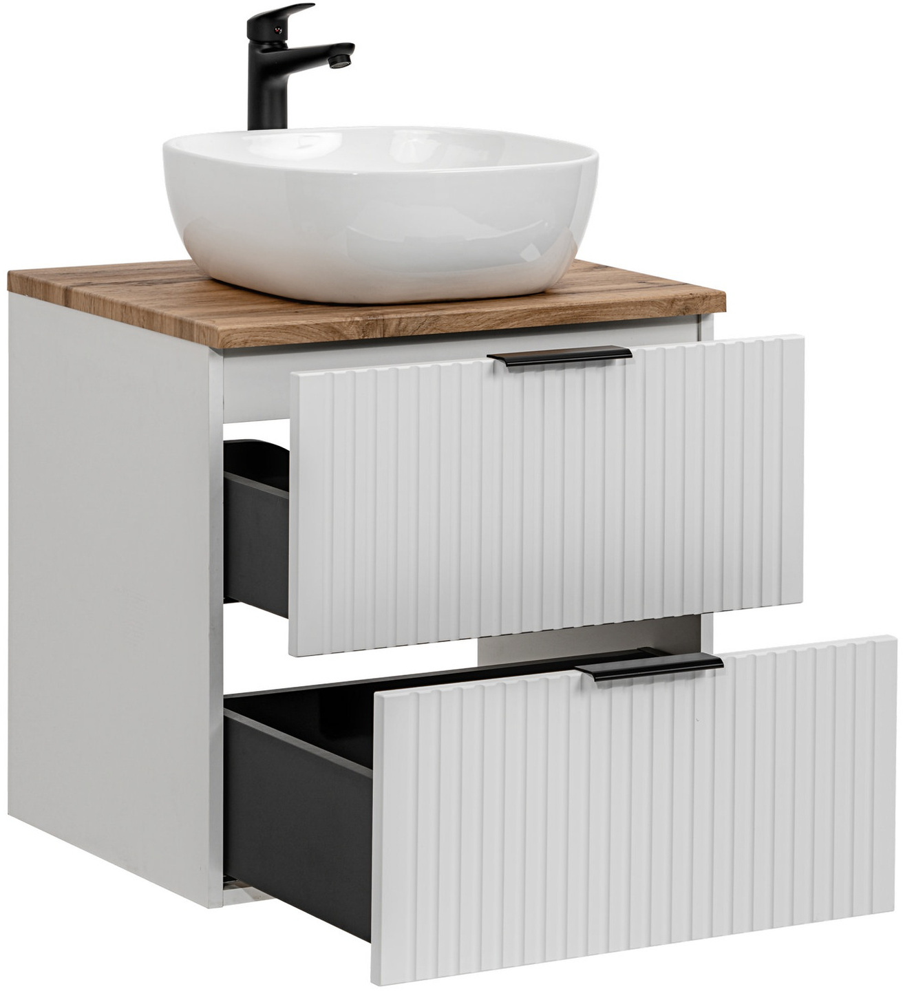 Meble łazienkowe Adel łączą elegancję i funkcjonalność. Pionowe, ryflowane fronty nadają meblom unikalny charakter i optycznie powiększają przestrzeń łazienki.