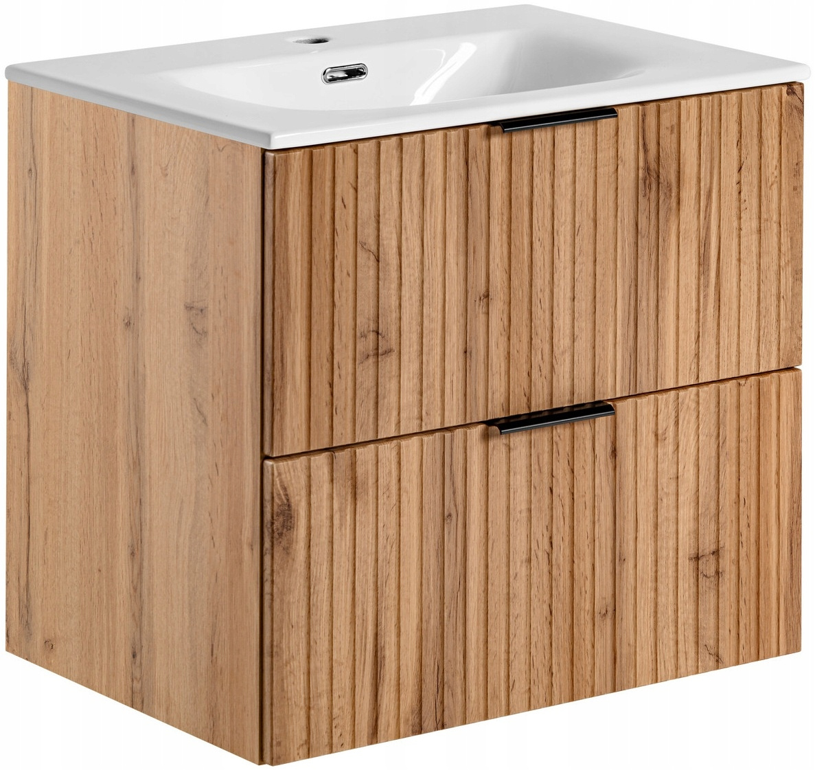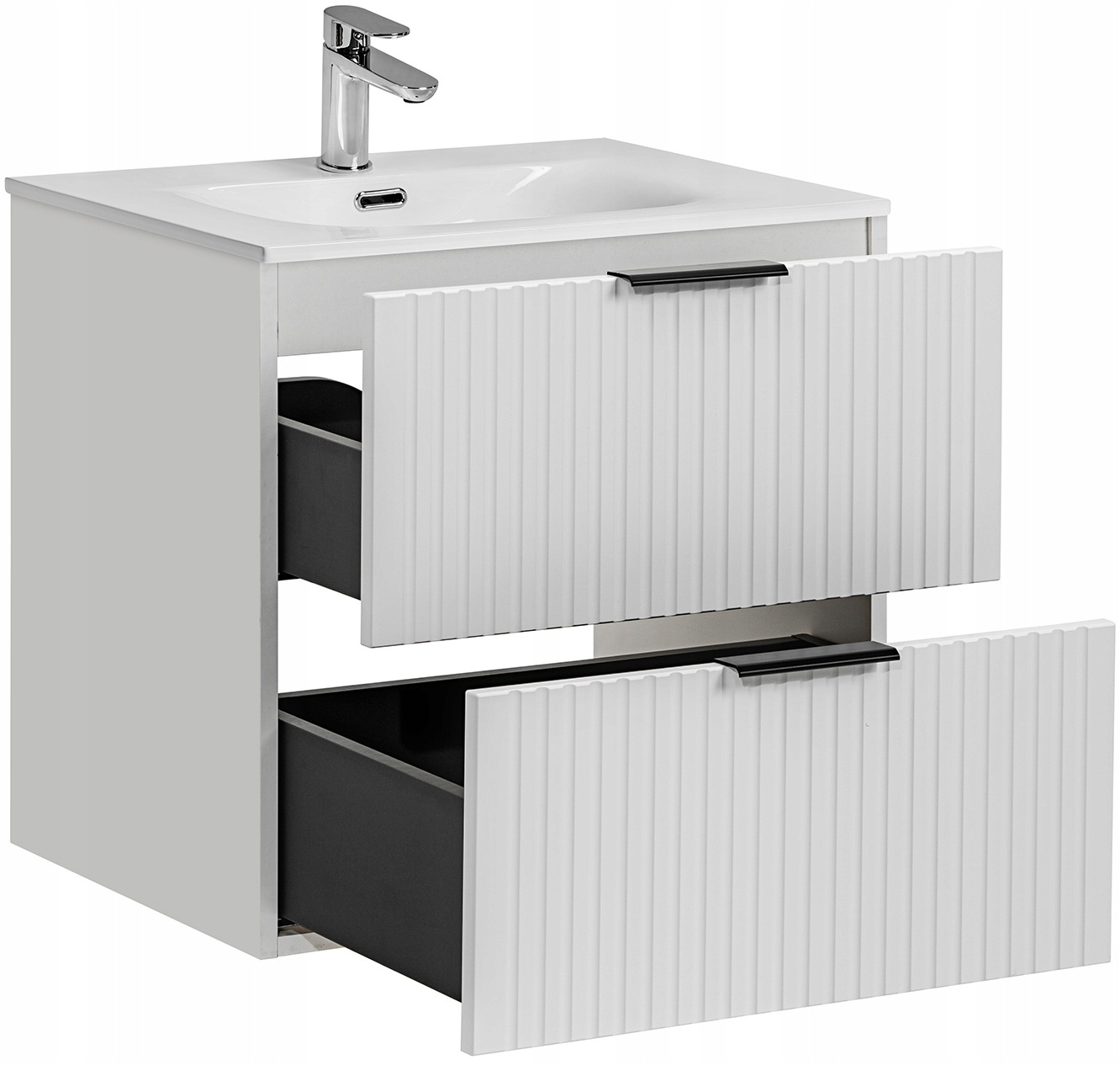 Meble łazienkowe Adel łączą elegancję i funkcjonalność. Pionowe, ryflowane fronty nadają meblom unikalny charakter i optycznie powiększają przestrzeń łazienki.