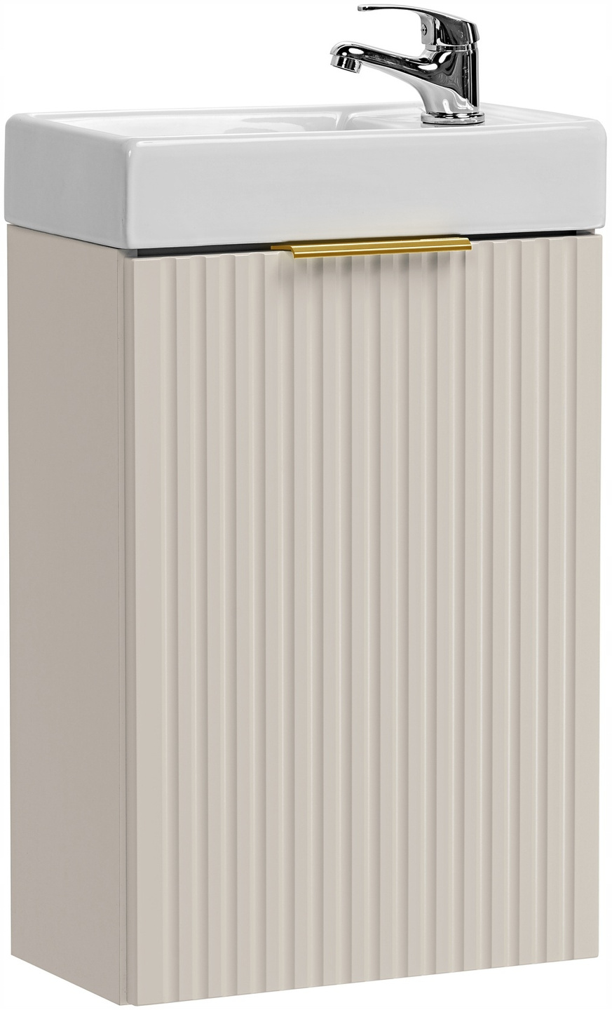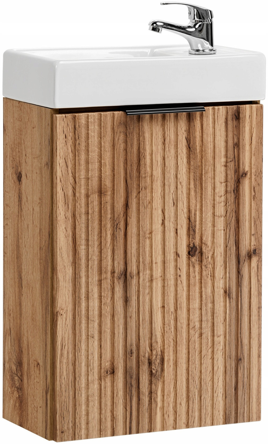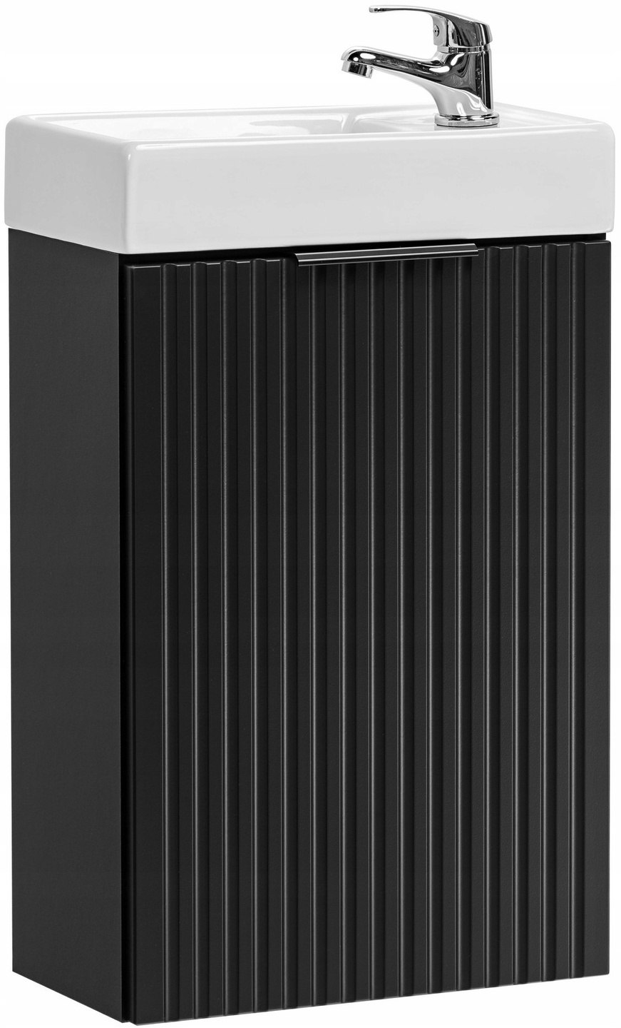 Meble łazienkowe Adel łączą elegancję i funkcjonalność. Pionowe, ryflowane fronty nadają meblom unikalny charakter i optycznie powiększają przestrzeń łazienki.