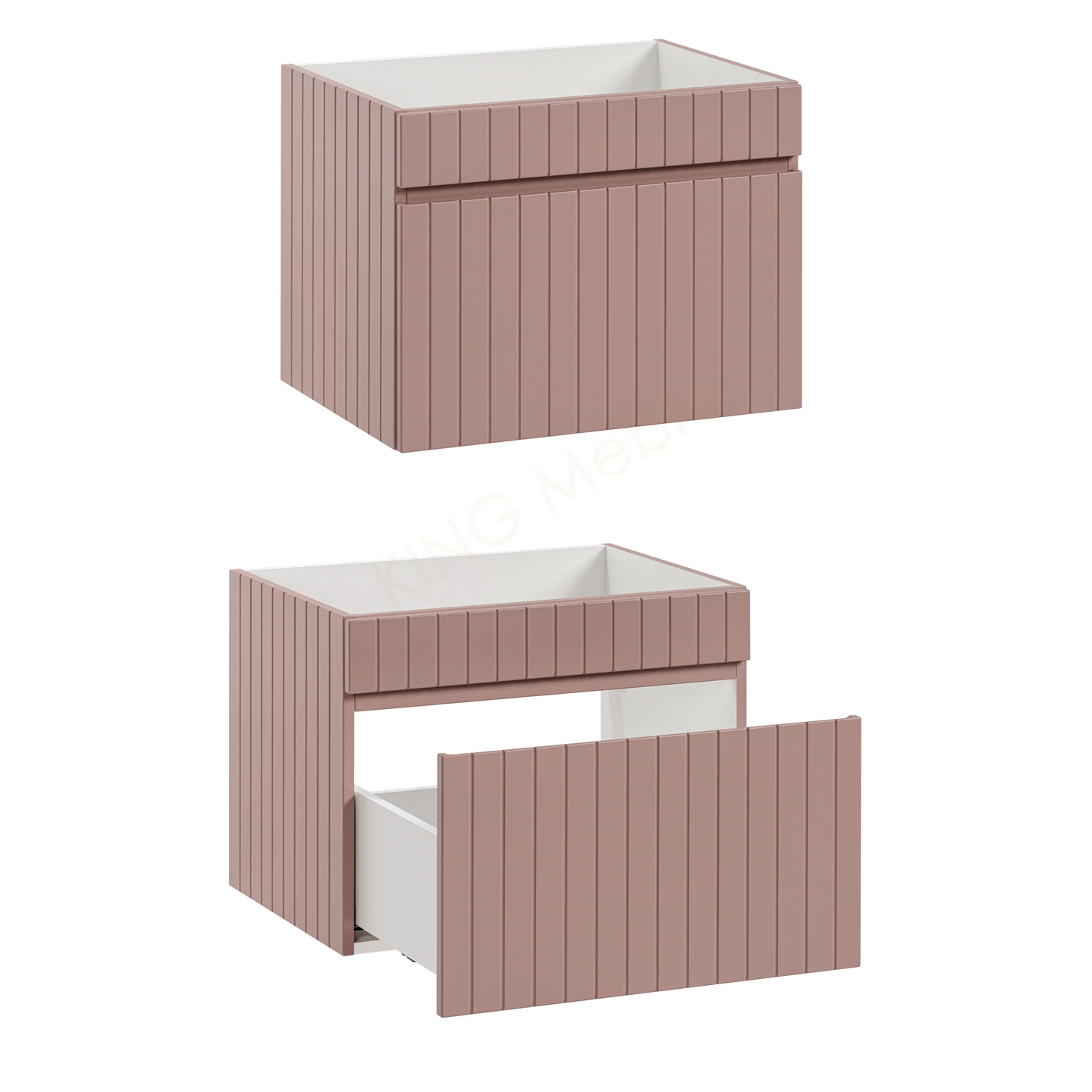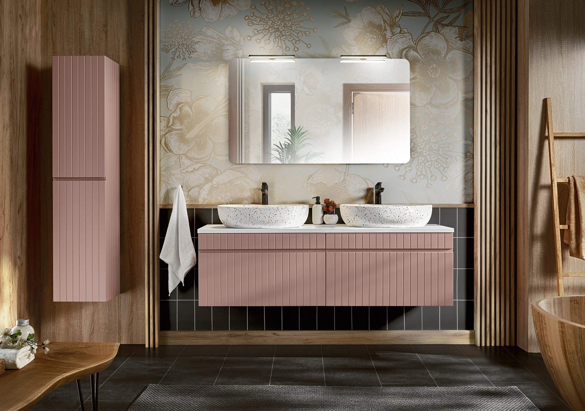 Kolekcja ICONIC ROSE, to projekt, w którym zostały wykorzystane pionowe frezowania we frontach. Ryflowanie, to szczególnie atrakcyjny i wszechstronny efekt wzorniczy wprowadzający ruch i płynność do każdego wnętrza łazienki. Nowoczesna kolorystyka jest odpowiedzią na zmieniające się trendy oraz potrzeby wizualne klientów, które stają się coraz bardziej wyszukane. Meble dostępne w kilku kolorach.