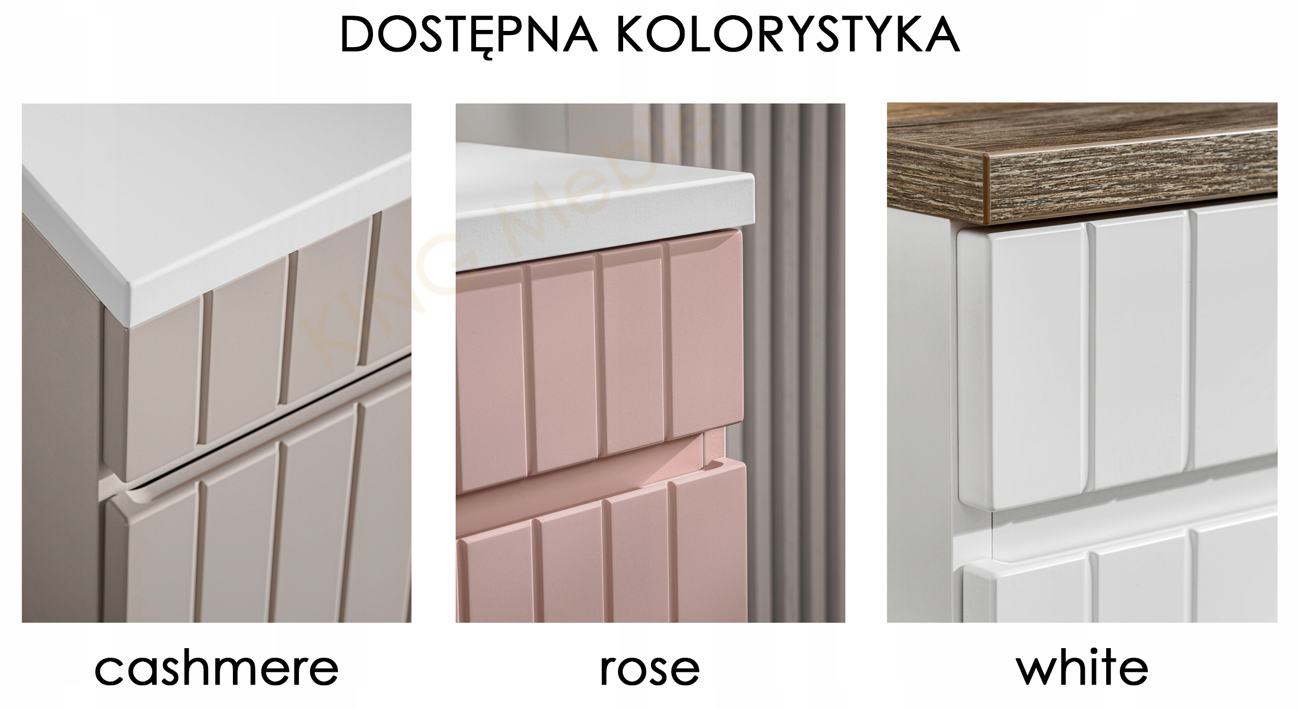 - meble wykonane z płyty MDF i płyty laminowanej, zapewniają trwałość i odporność na wilgoć