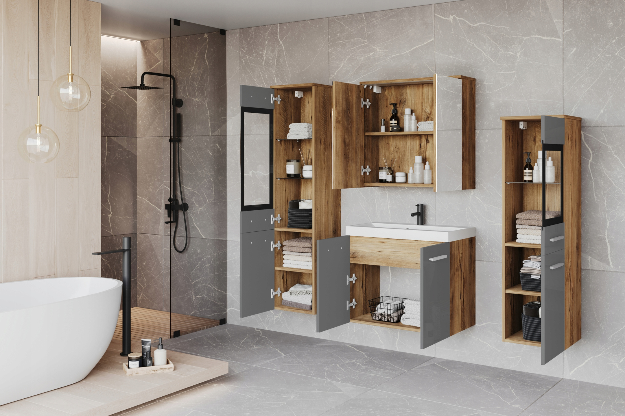 Meble łazienkowe Madrit II Kastanien Breslaw/Szary Połysk: