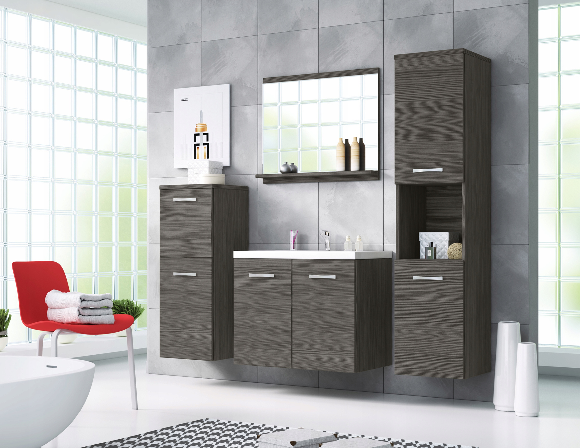 Meble łazienkowe MALO, lustro, umywalka DĄB LEFKAS