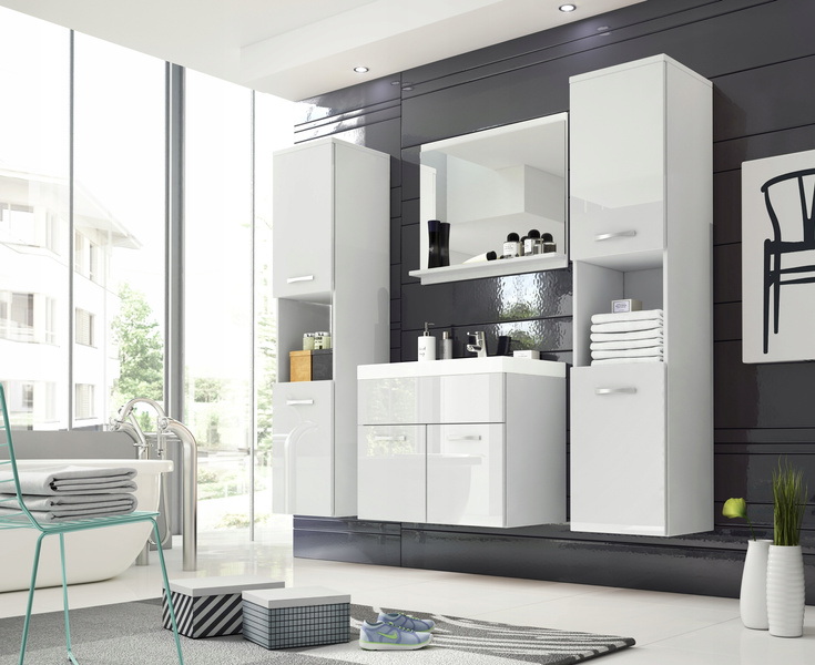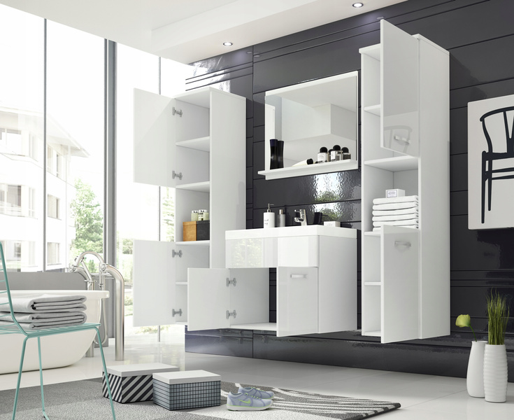 Szafki są pojemne, dzięki czemu możemy do nich schować środki czystości oraz kosmetyki zachowując w pomieszczeniu porządek i estetykę.