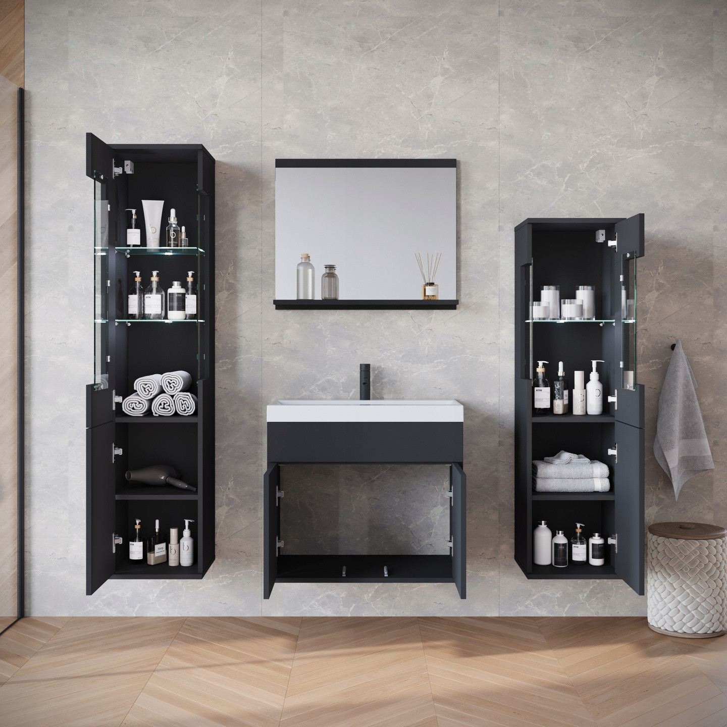 Meble łazienkowe NAIROBI umywalka, lustro CZARNY GRAFIT