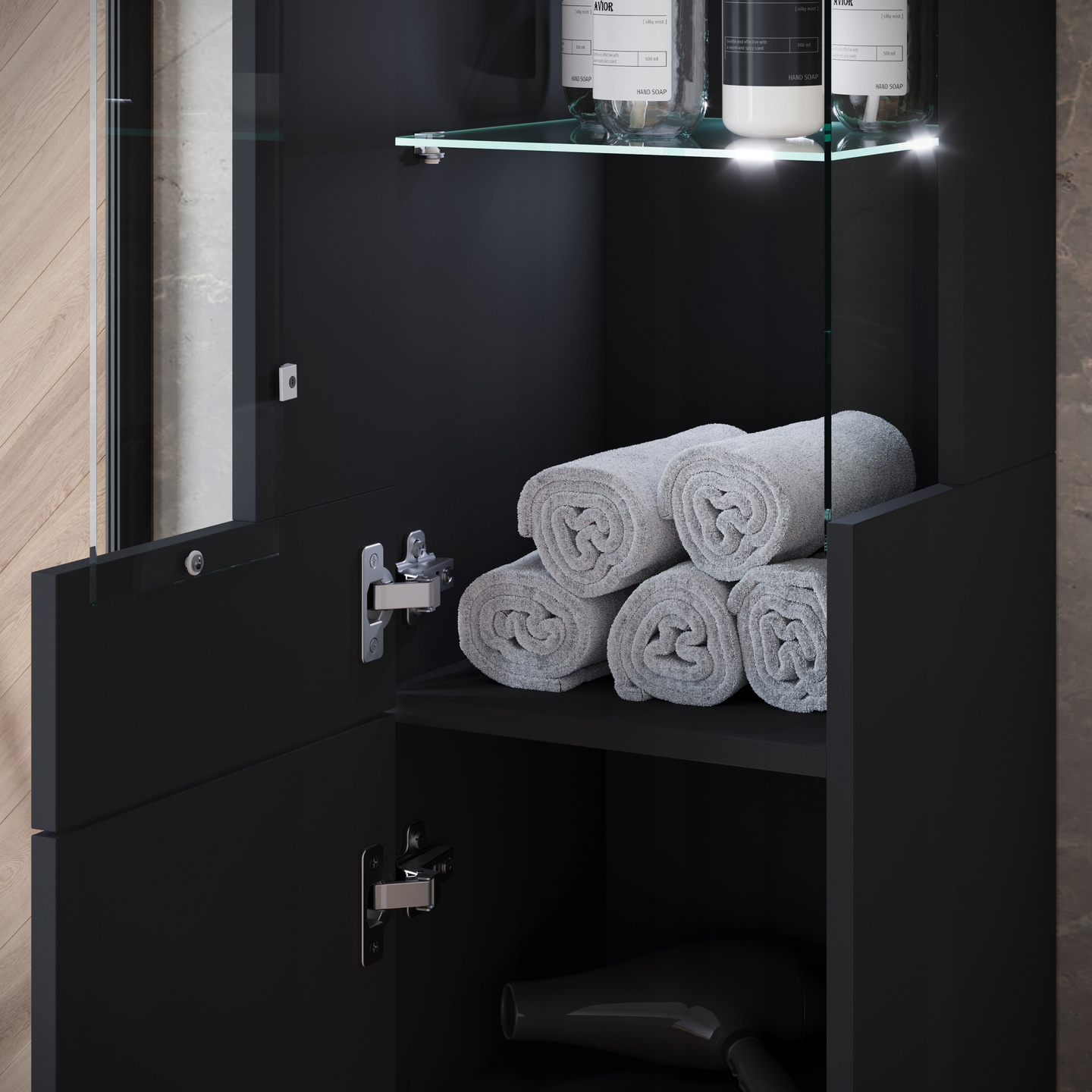 Szafki są pojemne, dzięki czemu możemy do nich schować środki czystości oraz kosmetyki zachowując w pomieszczeniu porządek i estetykę.