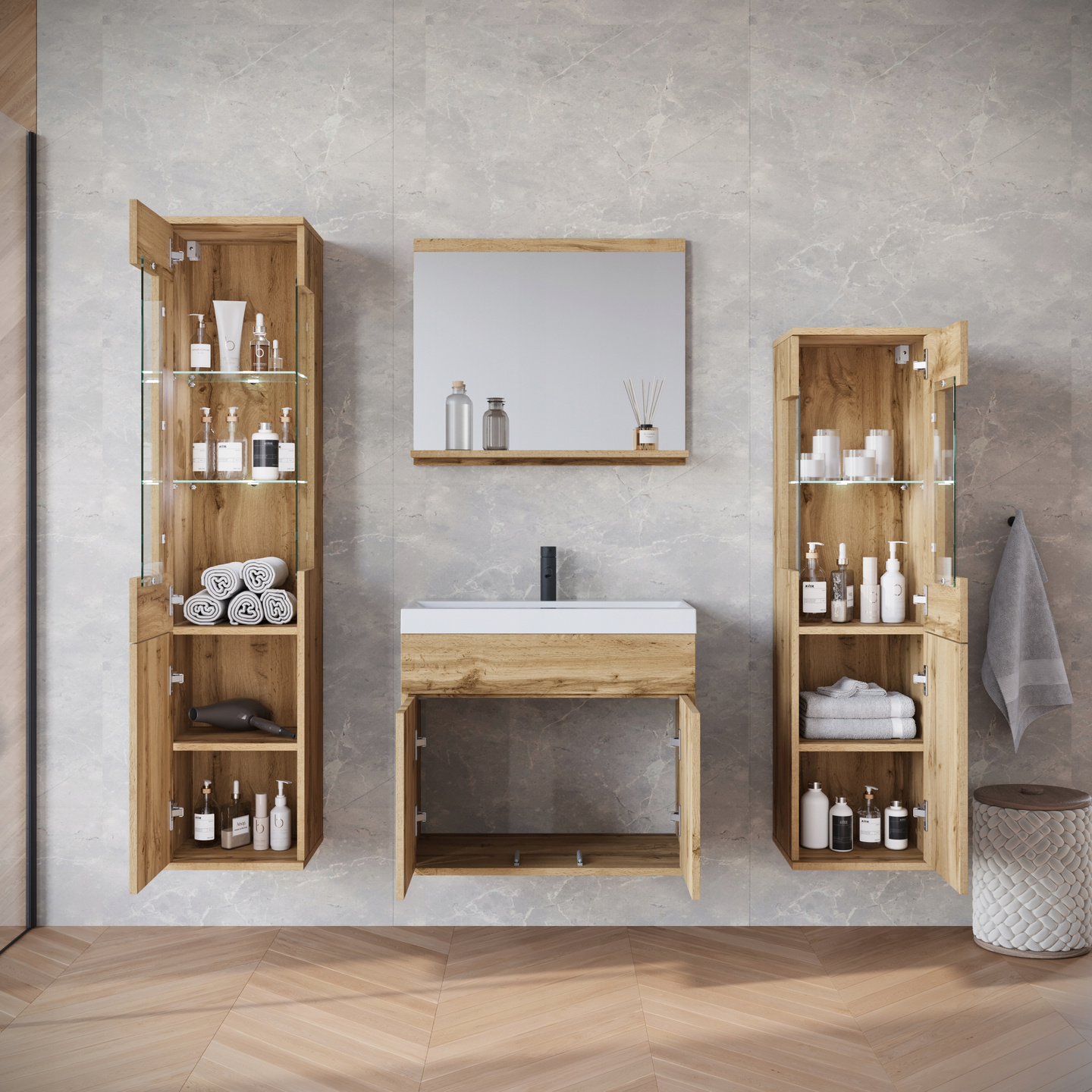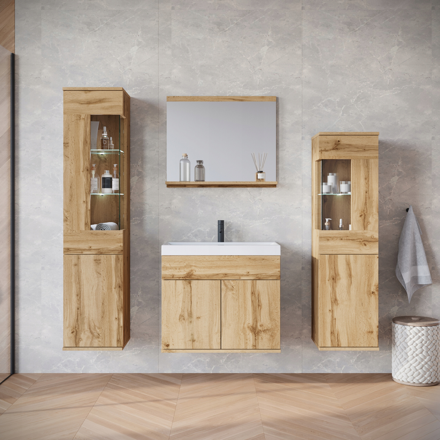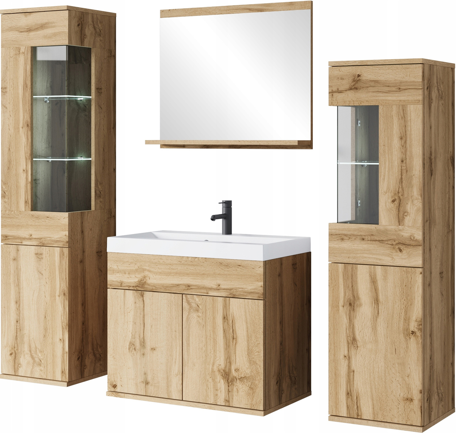 Meble łazienkowe NAIROBI umywalka, lustro DĄB WOTAN